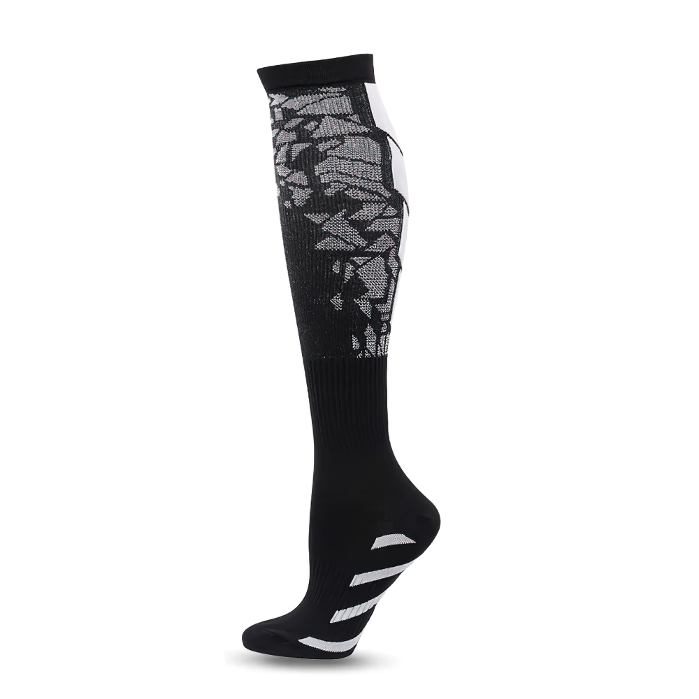 These knee-high cycling socks are designed for athletic performance, providing excellent support for various sports activities. Made from breathable cotton, they fit perfectly for individuals with edema, diabetic conditions, pulled muscles, pregnancy, and blood circulation needs. Ideal for sports like rugby, golf, ice hockey, football, basketball, skateboarding, hip-hop, and dance, they ensure optimal performance and durability.