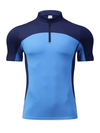 This tennis and golf ice silk T-shirt is designed for fitness training and active sport wear. The muscle fit cut enhances the physique, while the half zip collar adds a modern athletic edge. Colour block panels create a dynamic look suitable for gym sessions, running, golf, or tennis. Lightweight stretch fabric supports movement, making it ideal for workouts and everyday sport styling.