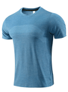 This quick-dry short-sleeve sport T-shirt is built for gym training, running, and fitness sessions. Designed with breathable sportswear technology, it promotes airflow through ventilated knit panels while supporting active movement. The lightweight stretch fabric enhances flexibility during workouts, making it ideal for trainers, gym jerseys, and everyday performance wear.