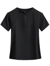Stay cool in this women's half-zip yoga T-shirt with short sleeves and a sleek stand collar. Quick-dry fabric resists pilling and keeps a smooth look through workouts, running, and studio sessions. Lightweight stretch polyester and spandex move with you, while the zipper lets you adjust airflow on the go. Pair it with leggings for training or travel.