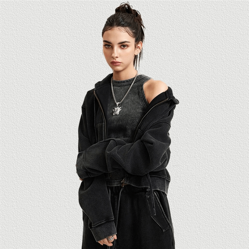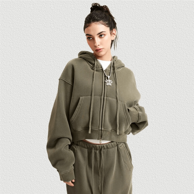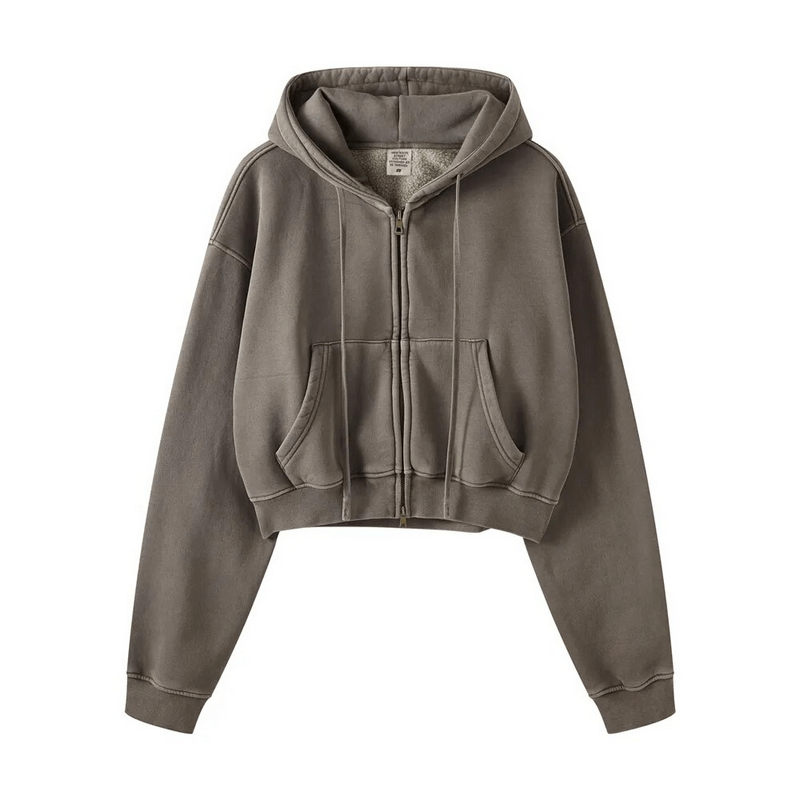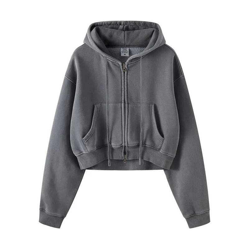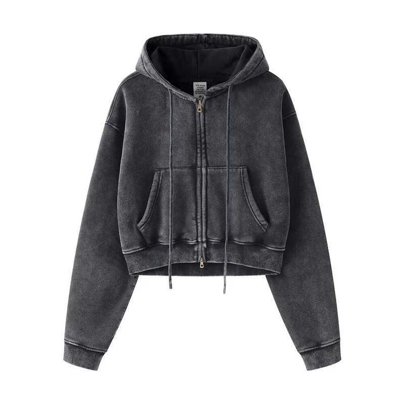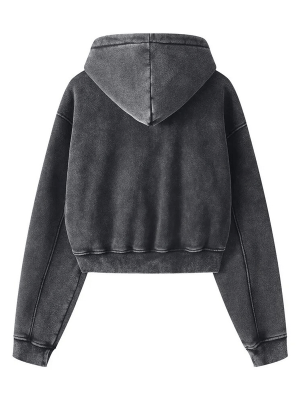 Stay fashionable and comfortable in this Women's Hoodie with a zipper and thick fleece material. The solid design, distressed decorations, and super-short length provide a stylish look for any occasion. Expertly crafted with cotton and polyester fabric, this zip-up hoodie is perfect for breezy evenings or leisurely outings.