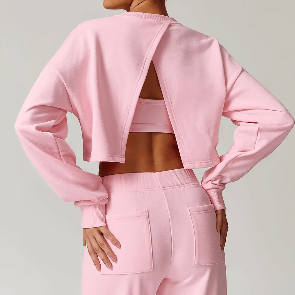 Round Neck Running Sweatshirt with Open Back and Pockets.