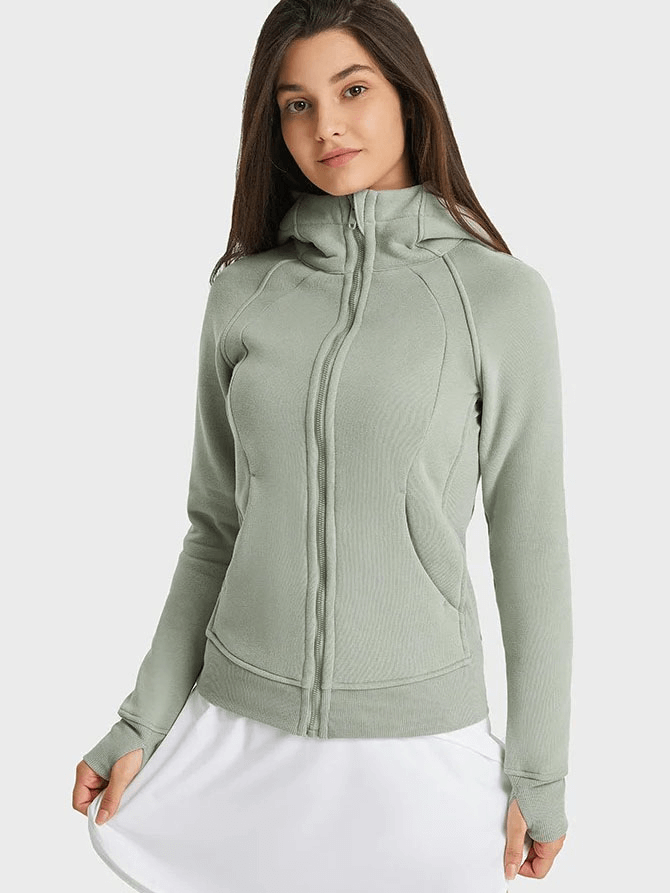 This Zip-Up Athletic Fleece Hoodie for Women is the perfect way to stay warm and comfortable during any activity. Featuring full-length sleeves and a stand collar for extra protection, this hoodie is made from a durable polyester blend that is 45% cotton and 55% polyester for flexible yet resilient wear. The zipper closure ensures a snug fit and classic style.