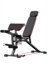 Take your workouts to the next level with this 4 in 1 adjustable weight bench. Designed for strength training, it features incline and decline settings, resistance bands, and a sit-up function for a complete body workout. Compact and foldable, it is ideal for home gyms, offering stability and versatility for exercises like presses, curls, rows, and core training. Perfect for beginners and advanced users alike.