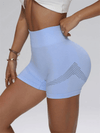 These seamless high-waisted yoga shorts are perfect for all types of fitness activities, including yoga, cycling, and running. Made with breathable and stretchable fabric, these shorts provide a snug fit that moves with your body. The high-waisted design ensures support during workouts, while the sleek blue color and design add a stylish touch to your workout wardrobe.