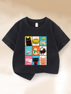 This playful kids' T-shirt features nine charming cat illustrations arranged in colorful squares, perfect for toddlers who love animals. Made from soft, breathable fabric with a classic round neck design, it offers easy wear and bright colors that keep little ones engaged and happy. A fun addition to any child's wardrobe for casual everyday wear.