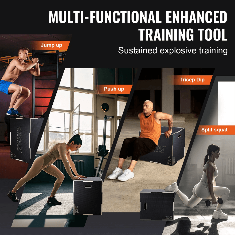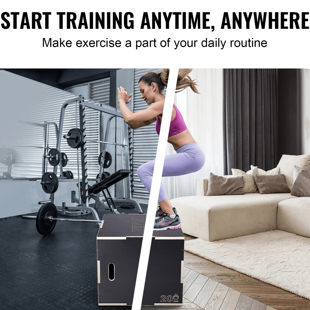This versatile 3-in-1 Plyometric Jump Box is perfect for home gym training, conditioning, and strength exercises. Made from durable materials, it offers three height settings for varied workout intensities. Ideal for plyometric training, it supports improved agility, strength, and endurance, making it a must-have for fitness enthusiasts.