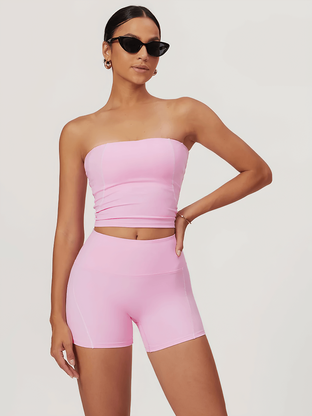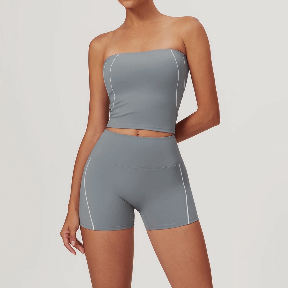 Dieser 2-teilige Yogaanzug für Damen besteht aus einem eleganten Tube-Top und Shorts mit hoher Taille und ist perfekt für Yoga, Laufen und Fitness. Er besteht aus Nylon und Elasthan und ist pilling- und schrumpffest, knitterfrei, atmungsaktiv, komprimierbar und schnelltrocknend. Diese Sportbekleidung ist für alle Jahreszeiten geeignet und ideal zum Laufen, Fitness, Radfahren, für extreme Herausforderungen, Wandern, Camping und Tanzen. Mit praktischen Eingrifftaschen.