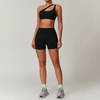 Erweitern Sie Ihre Fitnessgarderobe mit diesem nahtlosen Yoga-Set, das aus einem asymmetrischen One-Shoulder-Sport-BH und passenden Shorts besteht. Dieses Set wurde für Flexibilität und Stil entworfen und sorgt dafür, dass Sie sich beim Training frei bewegen können. Das atmungsaktive Gewebe verbessert die Leistung, während das schicke Design mühelos vom Fitnessstudio zum Freizeitausflug übergeht. Erhältlich in mehreren Farben, passend zu Ihrer Stimmung.