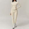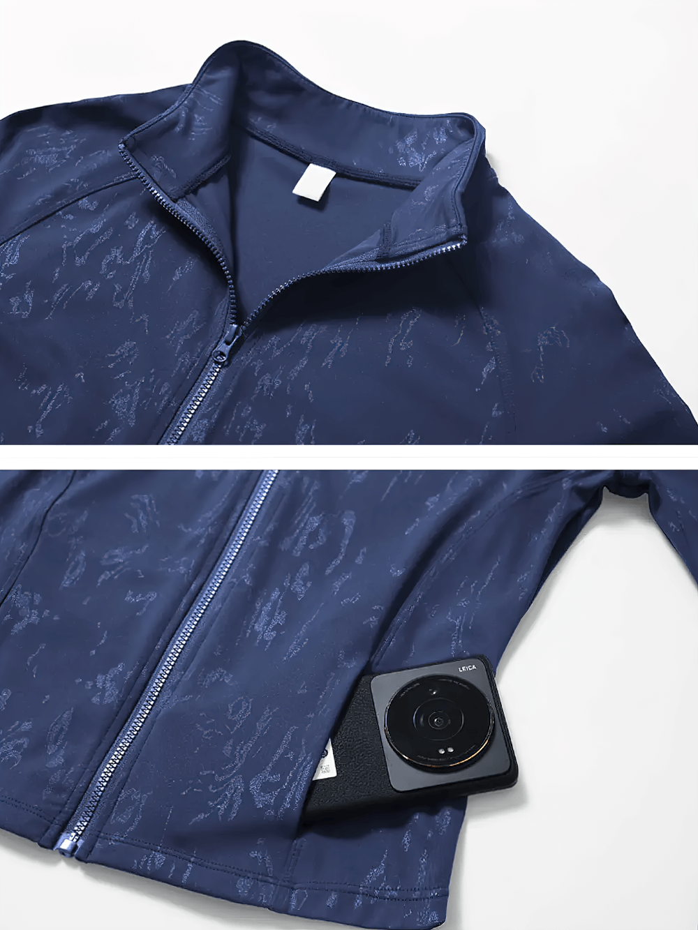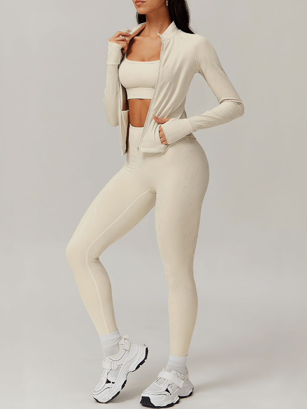 Werten Sie Ihre Sportgarderobe mit diesem nahtlosen Set aus Jacke und Leggings mit durchgehendem Reißverschluss auf. Die Jacke ist auf Leistung ausgelegt und verfügt über Daumenlochmanschetten und praktische Reißverschlusstaschen. In Kombination mit passenden Leggings mit hoher Taille verbessert dieses Outfit die Bewegungsfreiheit und den Stil. Das elegante Design ist ideal für Yoga, Joggen oder Freizeitkleidung und sorgt dafür, dass Sie überall gut aussehen und sich gut fühlen.