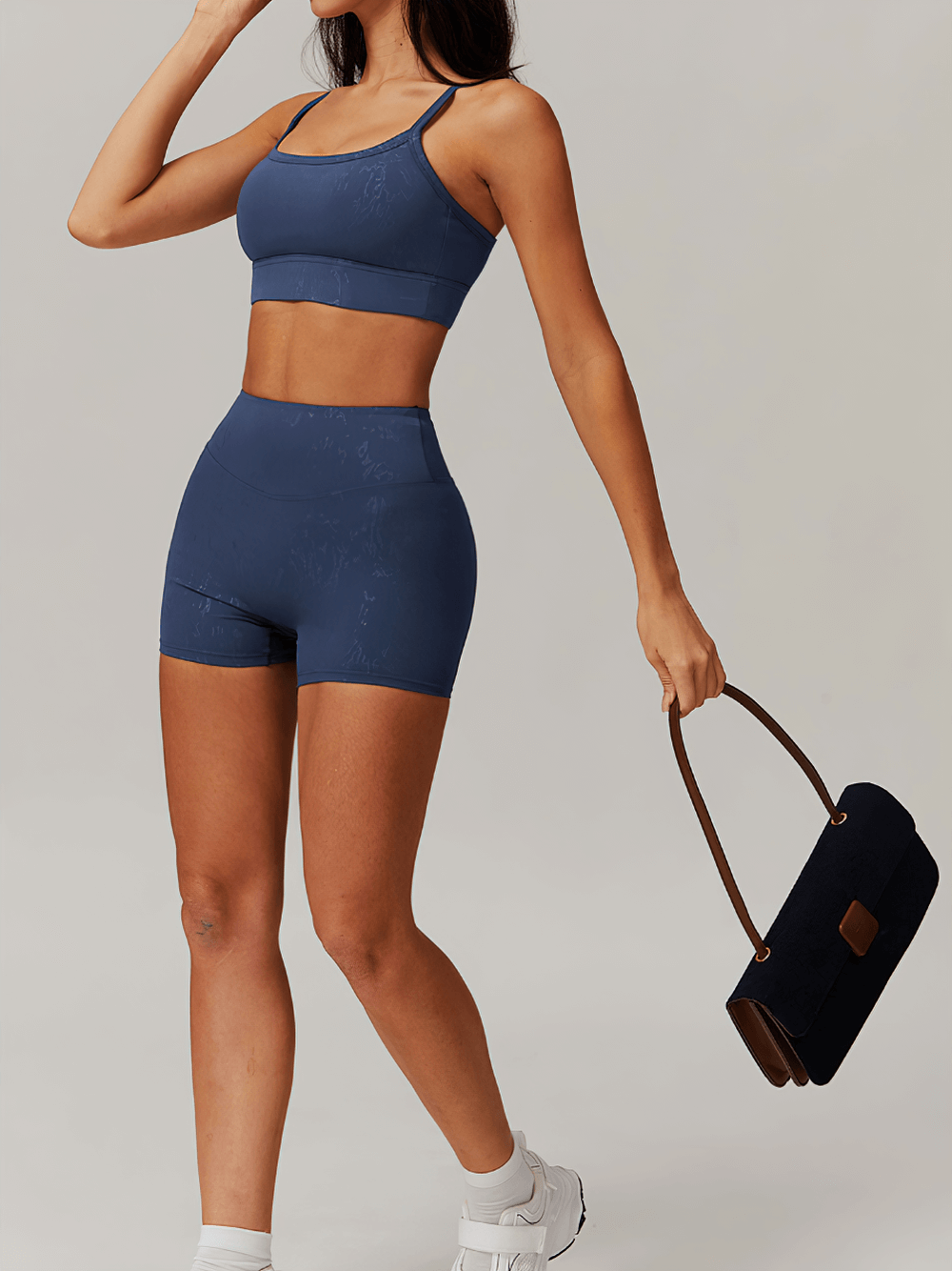 Werten Sie Ihre Trainingsgarderobe mit diesem nahtlosen Set aus Sport-BH und Shorts auf, das für Bewegung und Stil konzipiert wurde. Mit seiner stützenden Passform und dem flexiblen Stoff sorgt dieses Set für mühelose Leistung beim Yoga, im Fitnessstudio oder bei Outdoor-Aktivitäten. Sein schlankes Design und die vielseitigen Farben machen es perfekt für Training und Freizeit und verbinden Funktion und Mode nahtlos.