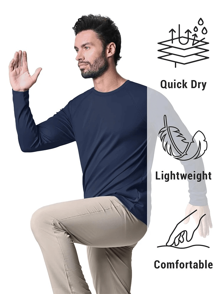 Sonnenschutz-Oberteil mit Rundhalsausschnitt und langen Ärmeln für Herren – schnelltrocknend.