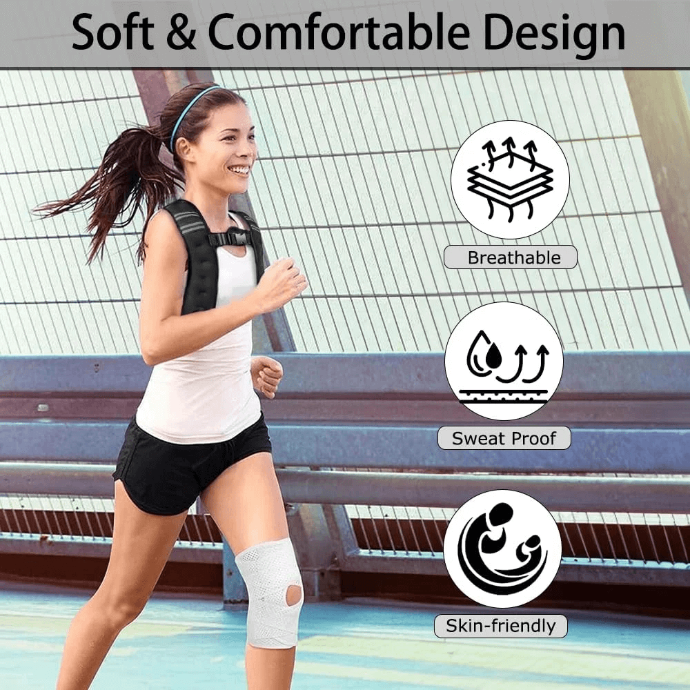 Boost your training with this adjustable weighted vest designed for running, fitness, and strength workouts. Made with durable materials, it distributes weight evenly for balanced performance. Features reflective strips for night visibility, dual buckle straps for a secure fit, and breathable padding for stability. Perfect for cardio, HIIT, and resistance training.
