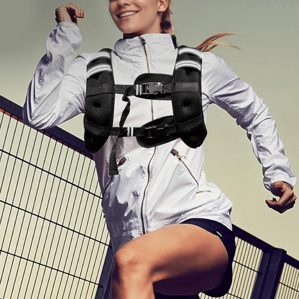 Boost your training with this adjustable weighted vest designed for running, fitness, and strength workouts. Made with durable materials, it distributes weight evenly for balanced performance. Features reflective strips for night visibility, dual buckle straps for a secure fit, and breathable padding for stability. Perfect for cardio, HIIT, and resistance training.