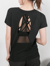 Kurzärmliges, lockeres Yoga-T-Shirt aus Mesh mit schönem Rücken