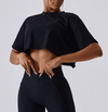 Sportliches lockeres Crop-Top für Damen / Training-Lauf-T-Shirt mit O-Ausschnitt