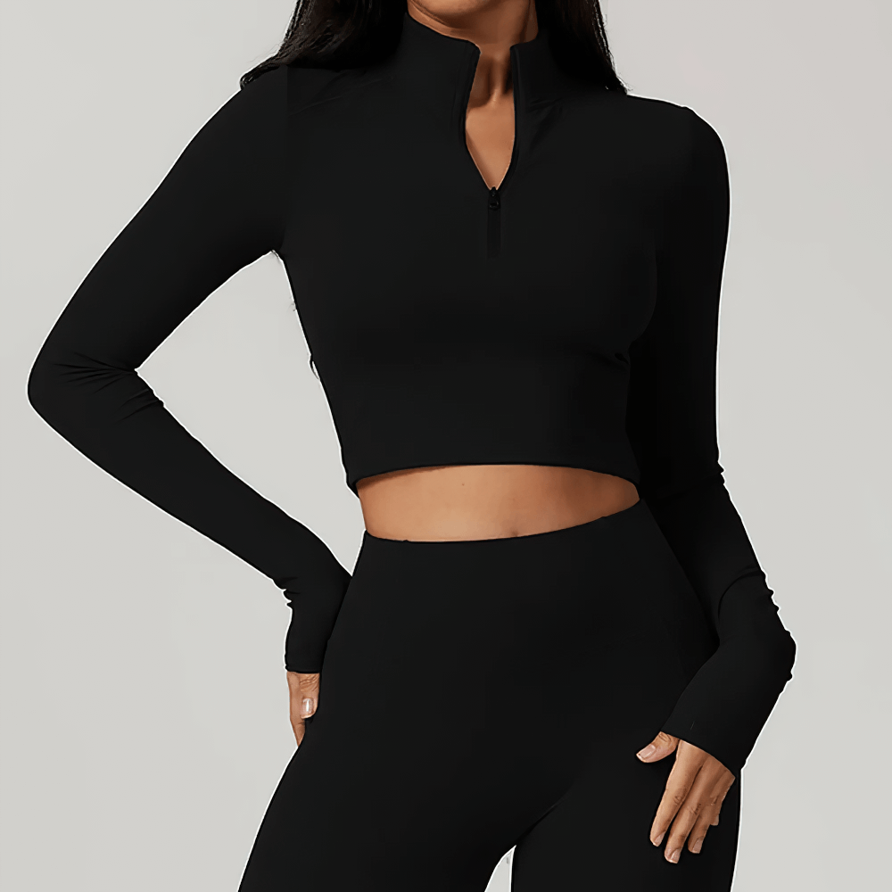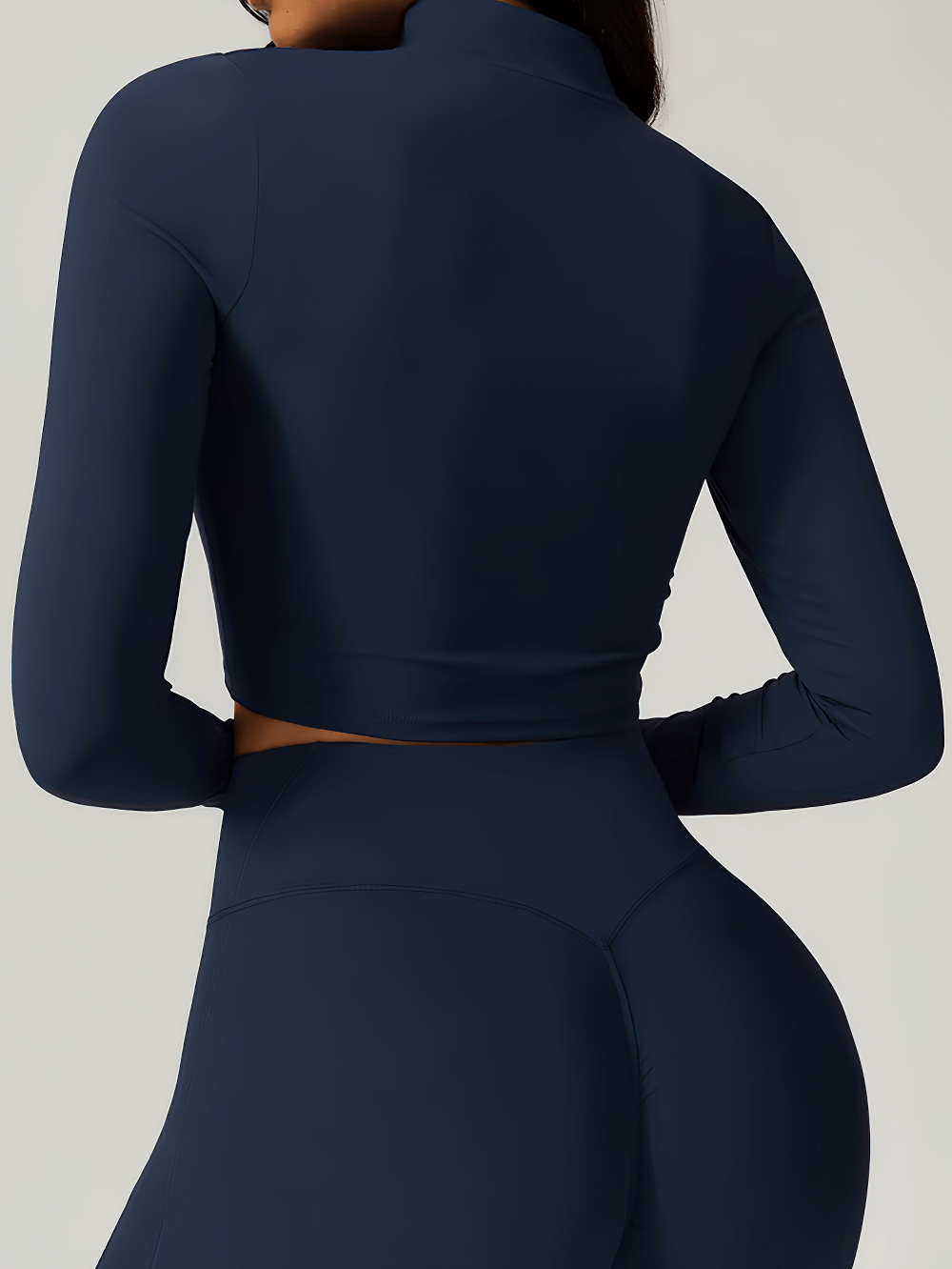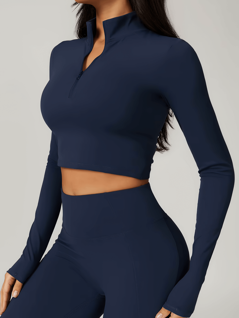 Langärmliges Yoga-Lauf-Fitness-Top mit Reißverschluss für Damen.