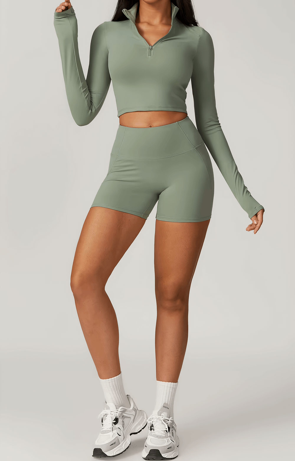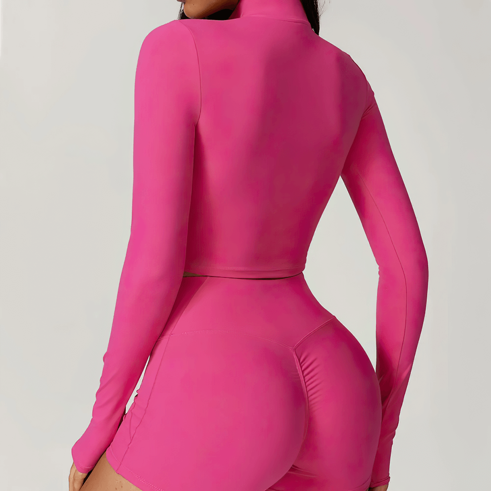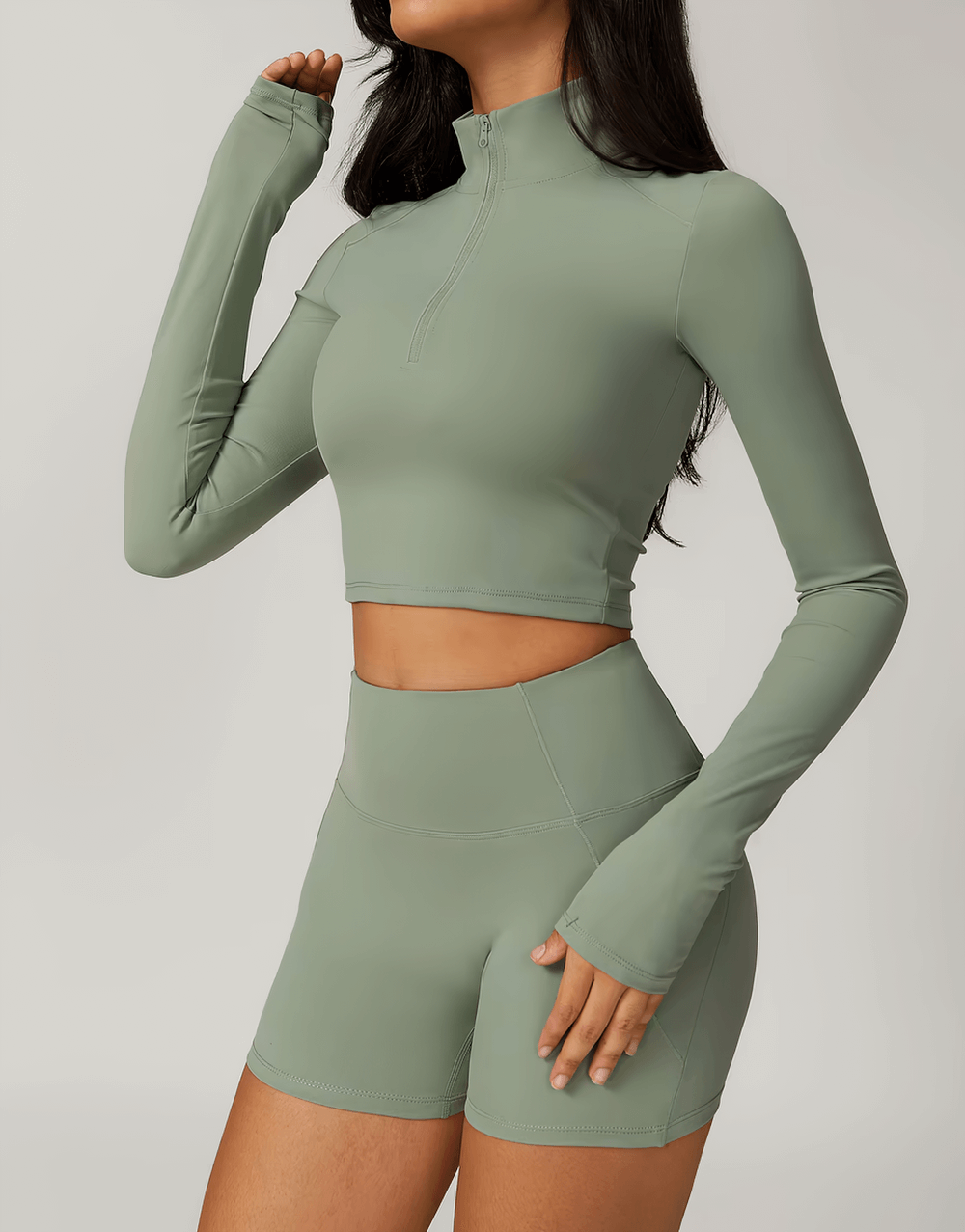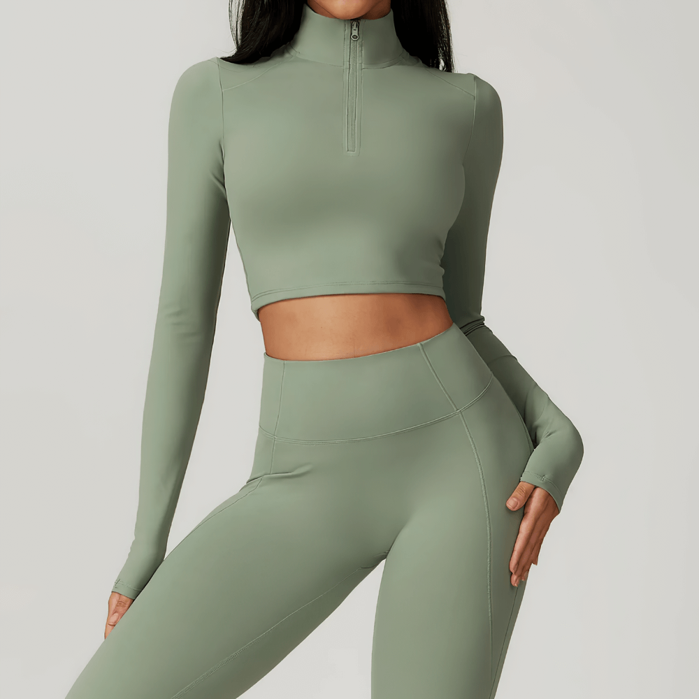 Langärmliges Yoga-Lauf-Fitness-Top mit Reißverschluss für Damen.
