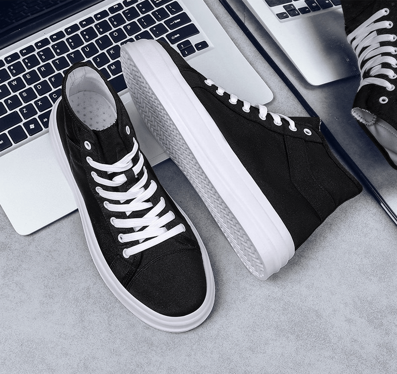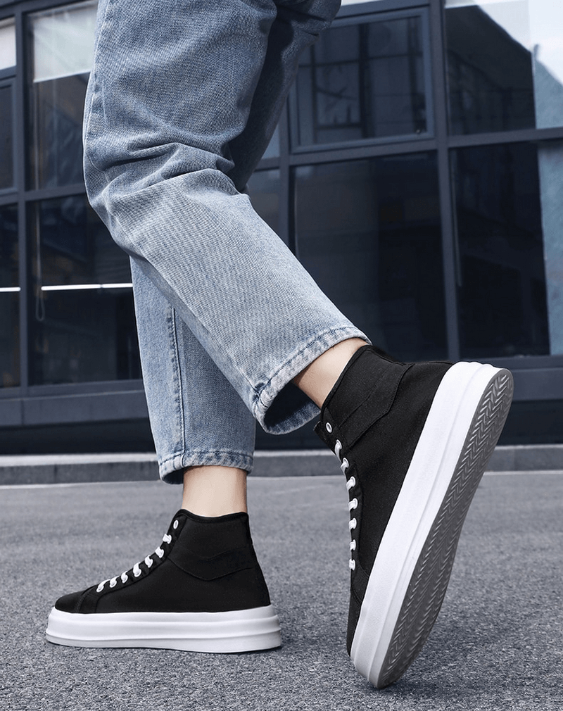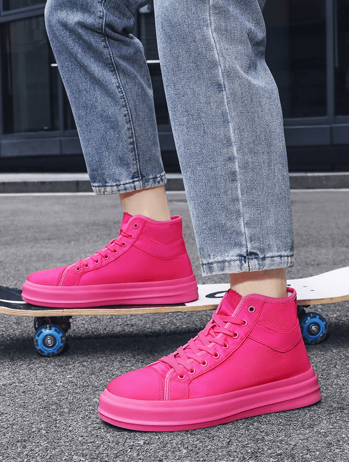 Diese flexiblen, hohen Sport-Sneaker Unisex mit Schnürsenkeln eignen sich perfekt für den Alltag. Das leichte Canvas-Obermaterial ist gepaart mit einer runden Zehenform, einer EVA-Außensohle und einem Mesh-Futter für Komfort und Halt. Die EVA-Einlegesohle sorgt für hervorragende Dämpfung, während der Schnürverschluss für einen sicheren Sitz sorgt. Mit einem Cross-Tied-Modeelement werden diese Sneaker mit Sicherheit ein Statement setzen.