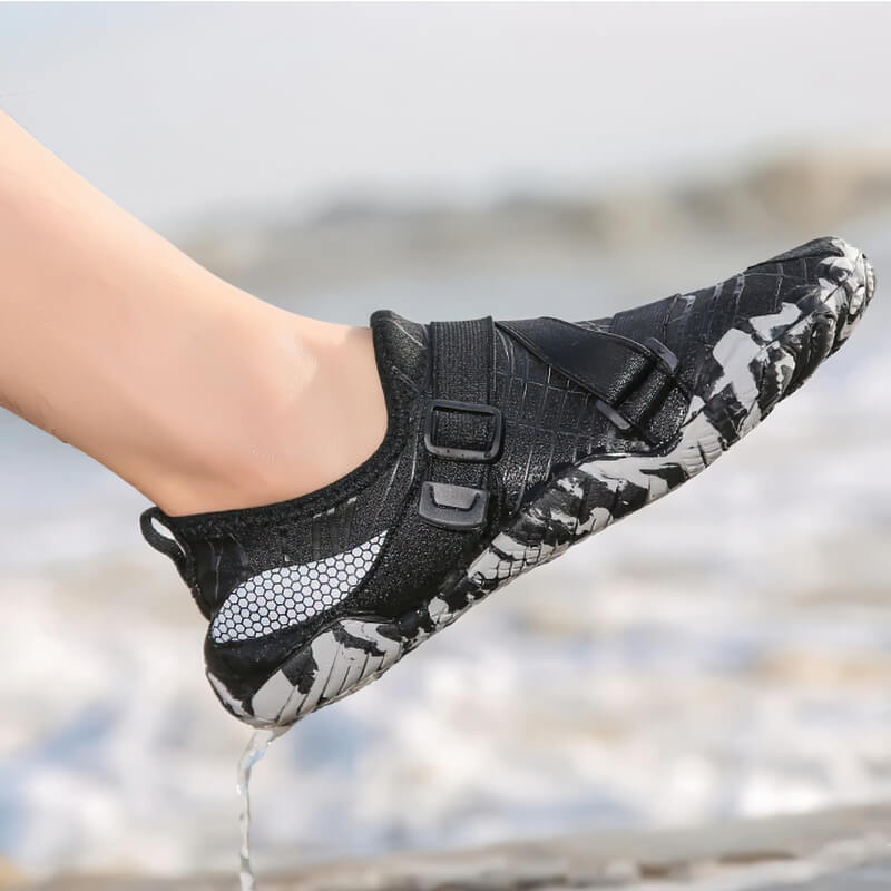 Unsere rutschfesten, atmungsaktiven Schwimm- und Angel-Aquaschuhe bieten dank ihres synthetischen Obermaterials und der TPR-Außensohle hervorragenden Schutz bei Wassersportaktivitäten. Die Unisex-Slipper zeichnen sich durch hervorragende Atmungsaktivität aus und eignen sich daher ideal für Strandcamping, Tauchen, Fitness und mehr. Genießen Sie Ihre Wasserabenteuer mit der Gewissheit, dass Ihre Füße sicher sind.