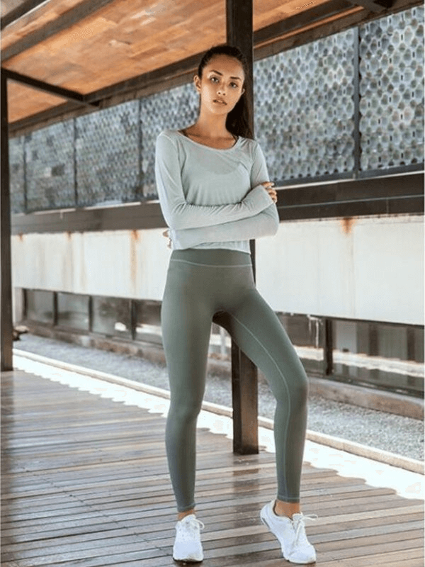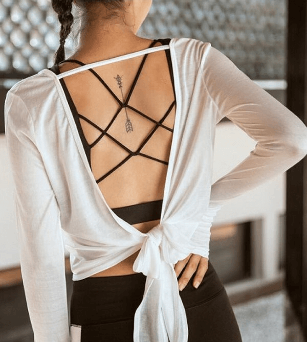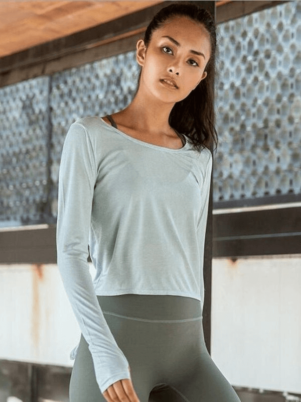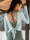 Damen-Sport-Yoga-Tops mit langen Ärmeln und offenem Rücken