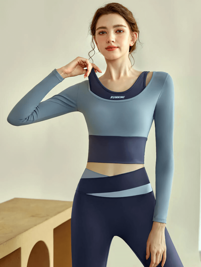 Damen-Sport-Langarm-Crop-Top / Damen-Tight-Top für Fitnesstraining