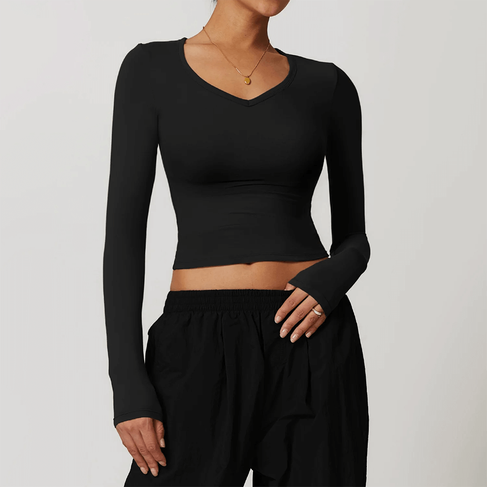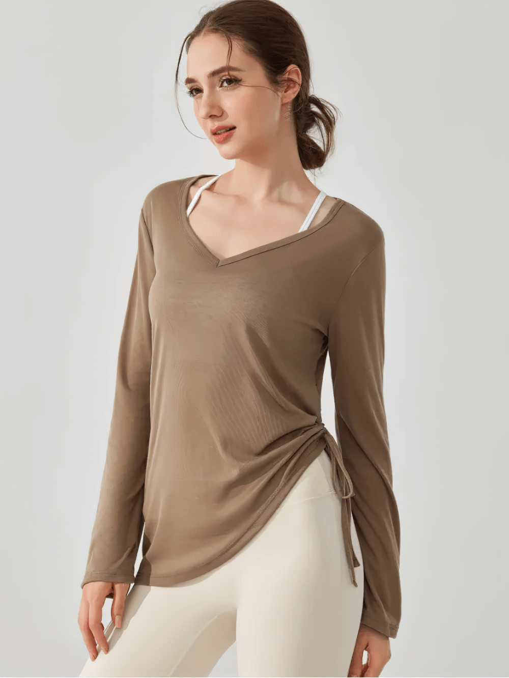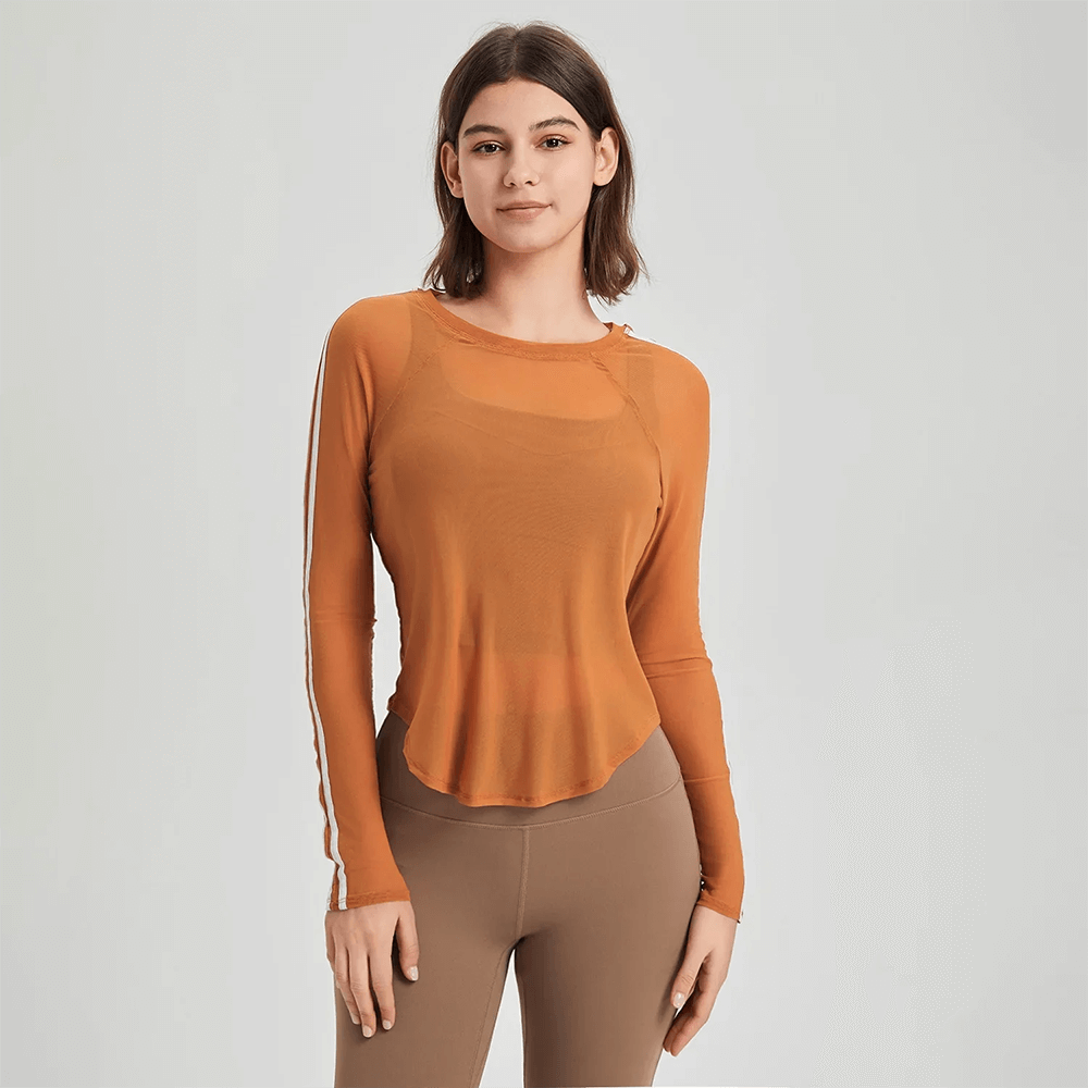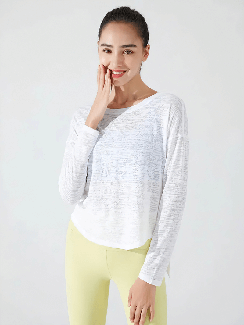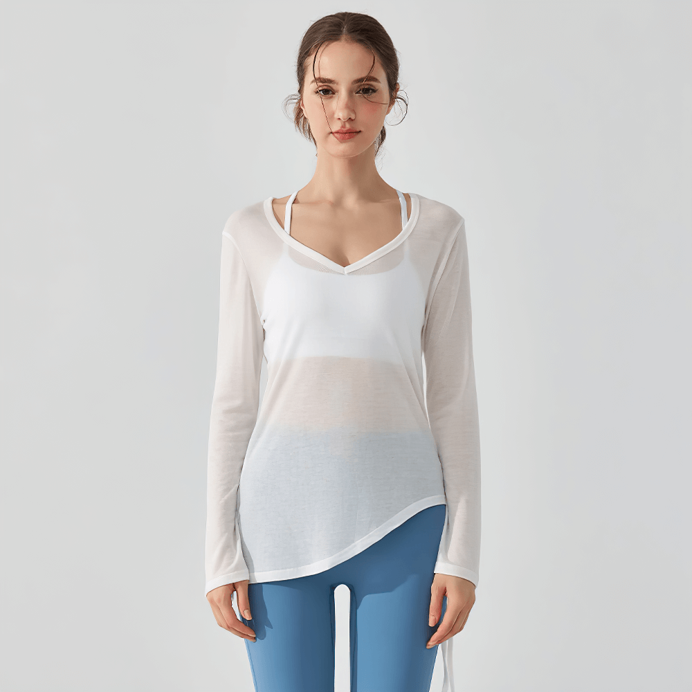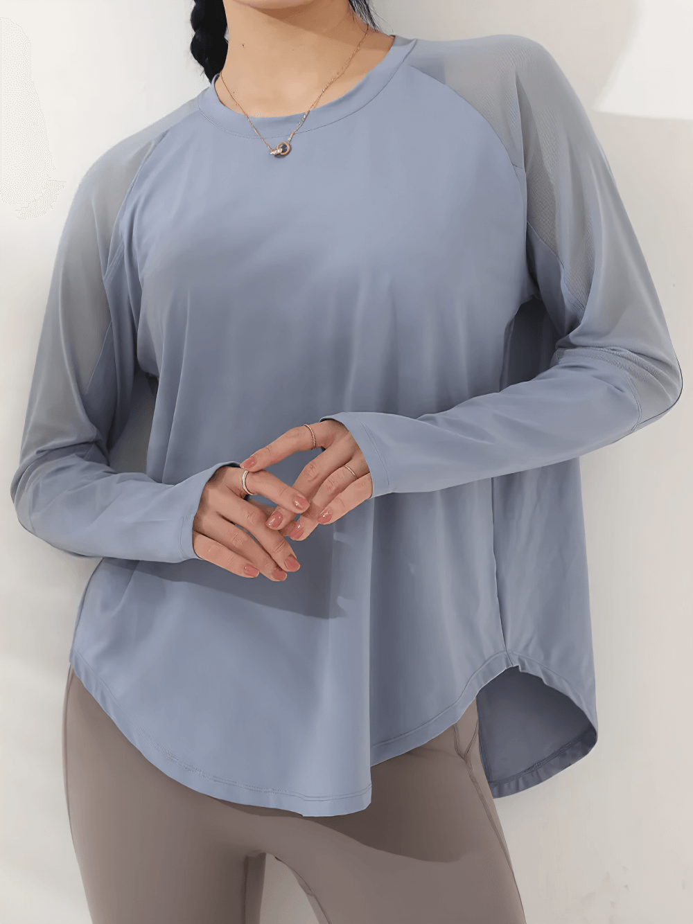 • Leichte lange Ärmel: Diese Oberteile eignen sich ideal zum Schichten oder für Workouts bei kühlem Wetter und bieten eine bequeme und atmungsaktive Option. Sie eignen sich perfekt zum Laufen, Wandern oder für Studiokurse, bei denen Sie möglicherweise etwas zusätzliche Wärme benötigen, ohne zu überhitzen.