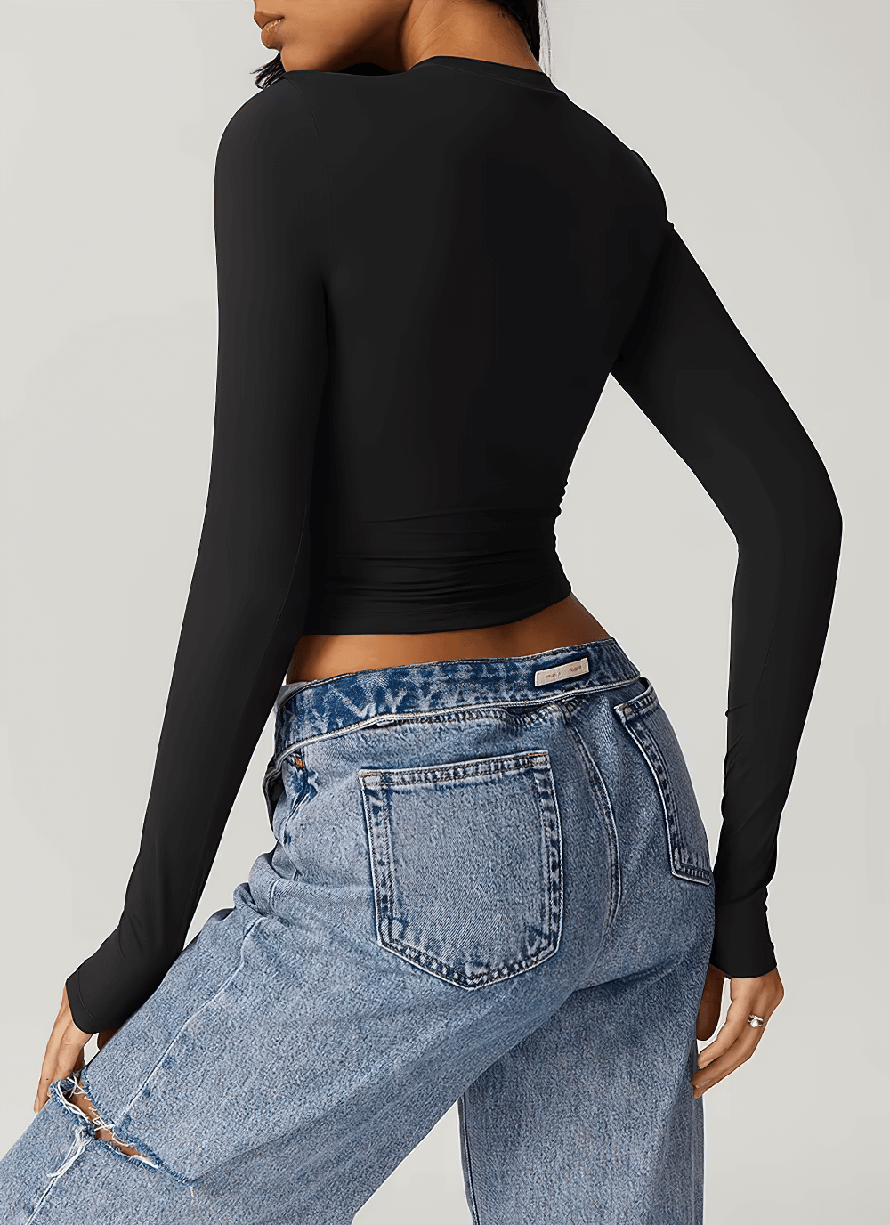 • Schichtsystem: Langarmoberteile eignen sich perfekt zum Schichten. Kombinieren Sie sie mit einem Tanktop für Workouts bei kühlerem Wetter oder tragen Sie sie unter einem Sweatshirt oder einer Jacke für zusätzliche Wärme bei kaltem Wetter.