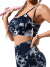 Seamless marble-print sports bra with slim straps and a ribbed underband. Stretch knit hugs the body for a secure fit during yoga, gym training, and runs. Breathable, quick-drying fabric helps keep you fresh, and the pull-on design is easy to slip on and off. Style it with matching high-waist leggings for a bold set in black, red, or blue. Light support for lifting, stretching, and cycling today!!