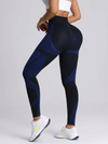 Power through workouts in women's sports leggings made for gym and yoga fitness. These sporty women's pants feature a high-rise waist and bold blue stripe panels for a sculpted look. Stretchy sportswear moves with squats, runs, and studio sessions, while the streamlined fit suits outdoor training. Pair these women's trousers with tanks or hoodies for an everyday female clothing style. Ideal for travel.