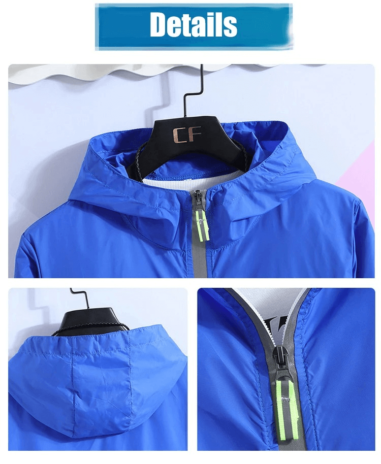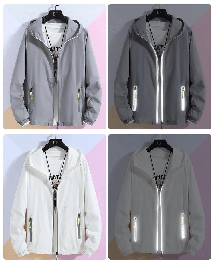 Eigenschaften: Anti-Falten, atmungsaktiv, schnelltrocknend, reflektierend, wasserdicht, winddicht, UV-Schutz.