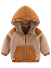 Keep your little one snug this season in this cozy sherpa jacket. Designed with a soft fleece body and contrasting nylon hood and pockets, it offers both warmth and durability. The front zipper makes dressing easy, while elastic cuffs and hem block cold wind. Perfect for outdoor play or everyday wear, this hooded jacket combines functionality with a cute, modern look.