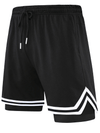 Elevate your athletic performance with these breathable men's basketball shorts. Featuring a black outer layer and a contrasting white stripe, these shorts offer a stylish look on and off the court. The inner mesh layer adds breathability to keep you cool and dry during intense workouts. These shorts are perfect for basketball training, games, weightlifting, running, or any other exercise activity.
