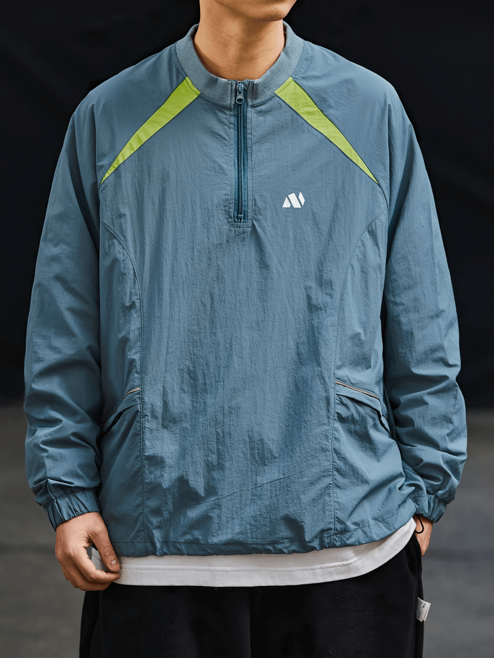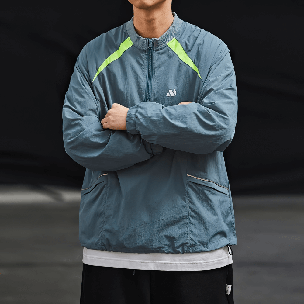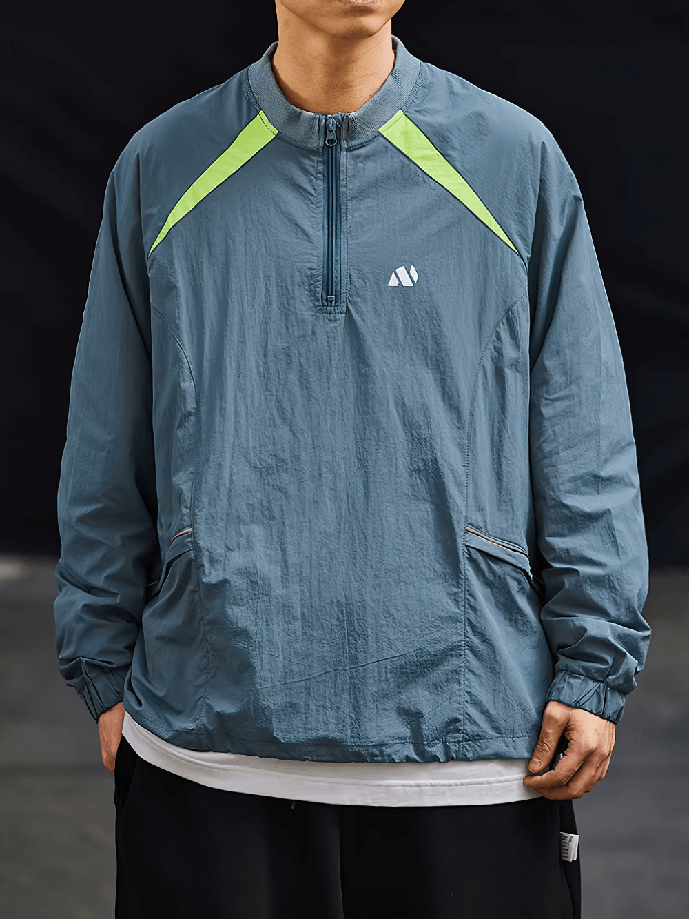 Spring Streetwear Half-Zipper Sports Jacket for Men.