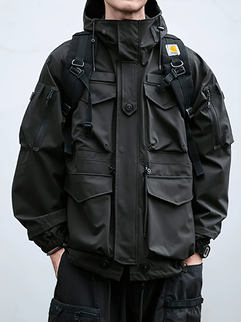 Gear up with this tactical waterproof hooded jacket, crafted from durable materials for extreme conditions. Featuring multiple utility pockets, adjustable cuffs, and a protective hood, this jacket is designed for functionality and style. Ideal for outdoor adventures, the windproof fabric and rugged construction ensure reliable protection and practicality for every journey.
