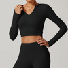 This women's long-sleeved crop top is crafted with nylon and spandex for ultimate stretch and durability. Perfect for yoga, running, or fitness, it features a flattering V-neck, breathable fabric, and quick-dry technology. Designed with anti-pilling, anti-shrink, and wrinkle-resistant features, this top supports every movement. Its compression fit adds style and functionality to hiking or cycling adventures.