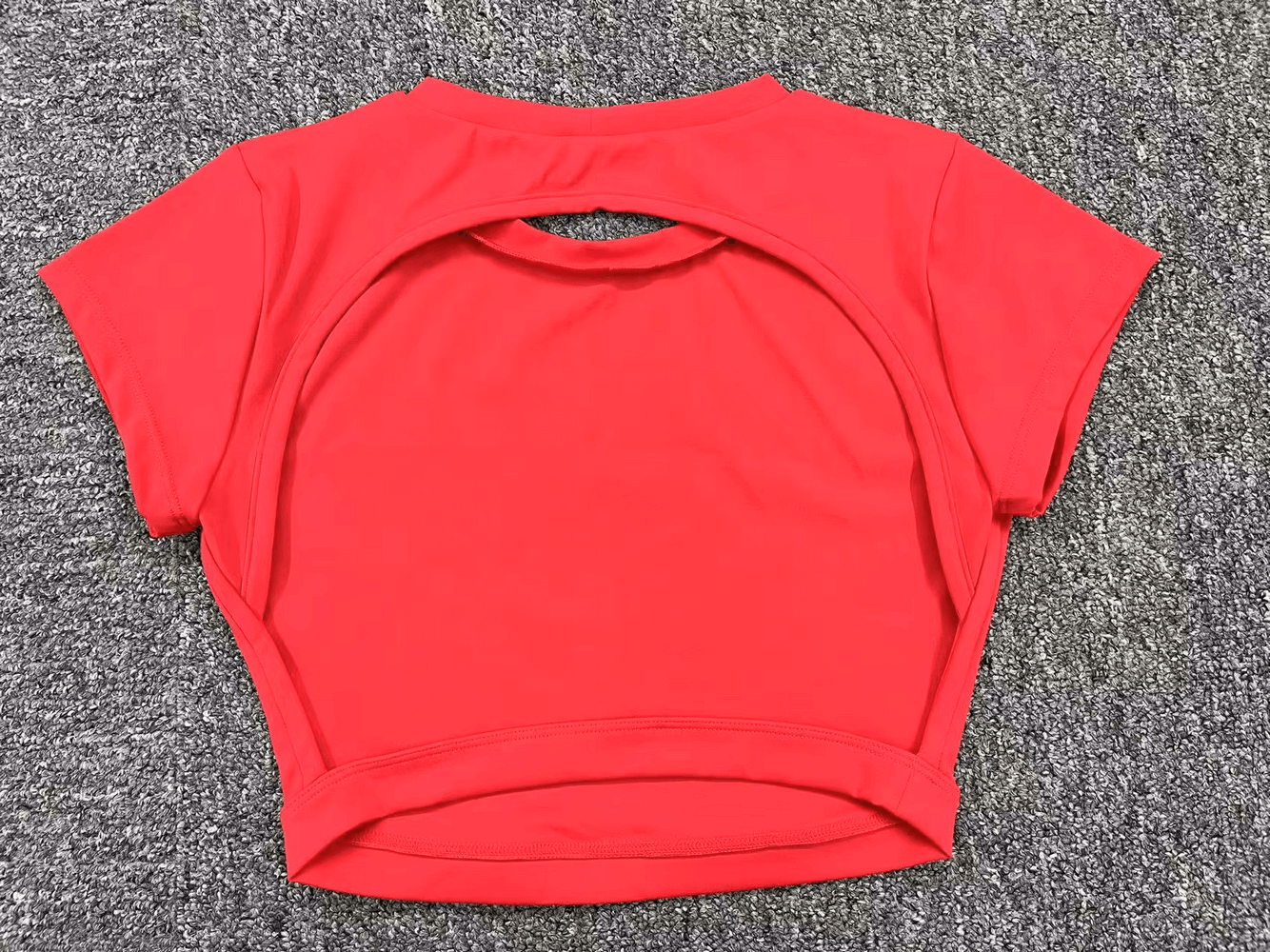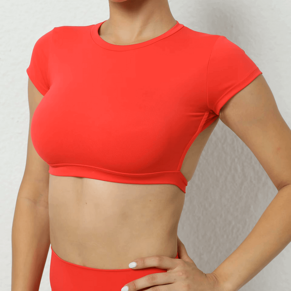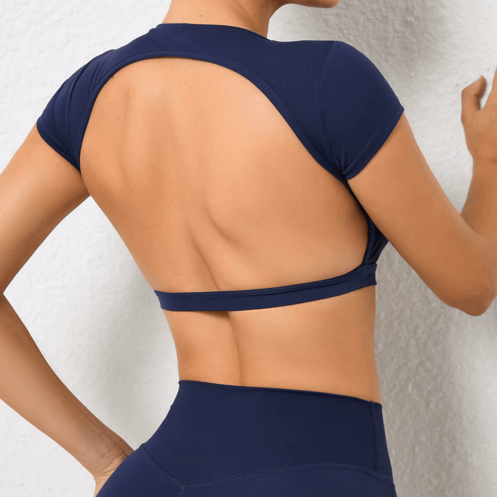 Stylish Backless Sports Crop Top - Yoga Round Neck T-Shirt for Women.