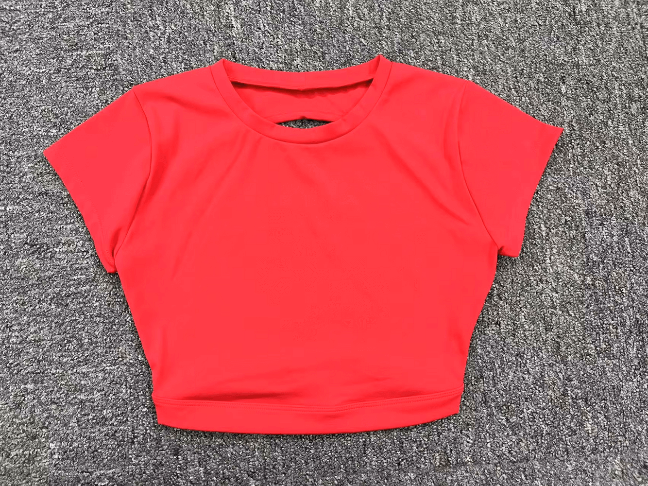 This women's yoga crop top combines style and function with a backless design and short sleeves. Made from breathable nylon and spandex, it features anti-pilling, anti-shrink, and quick-dry properties. Perfect for running, yoga, fitness, cycling, or hiking. The compressed fit and round neck offers a sleek silhouette for dancing or workouts.