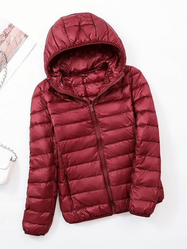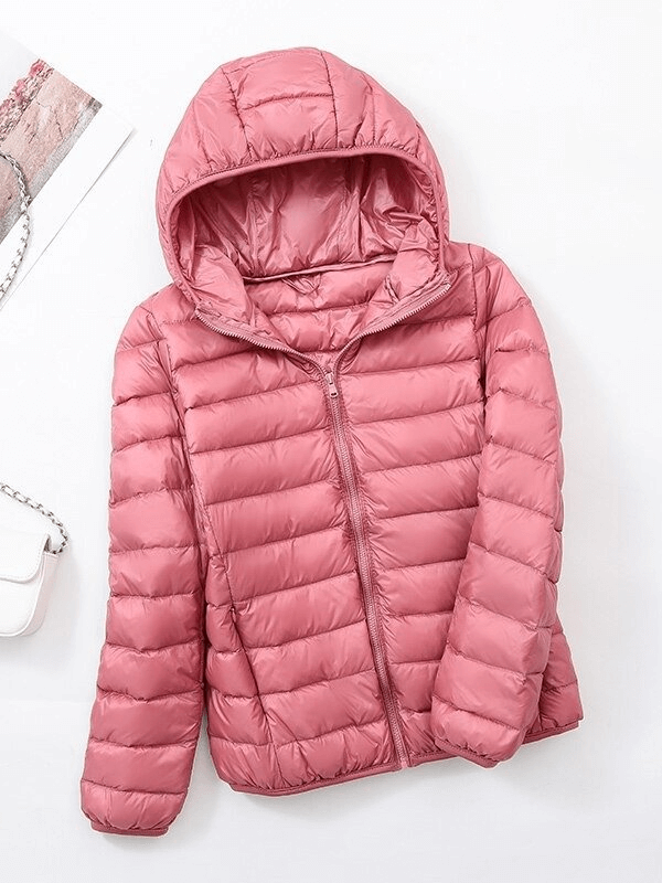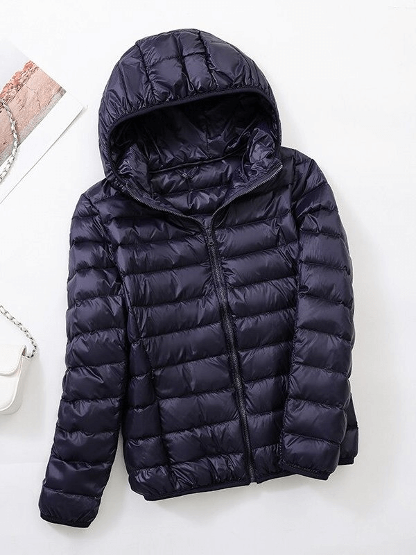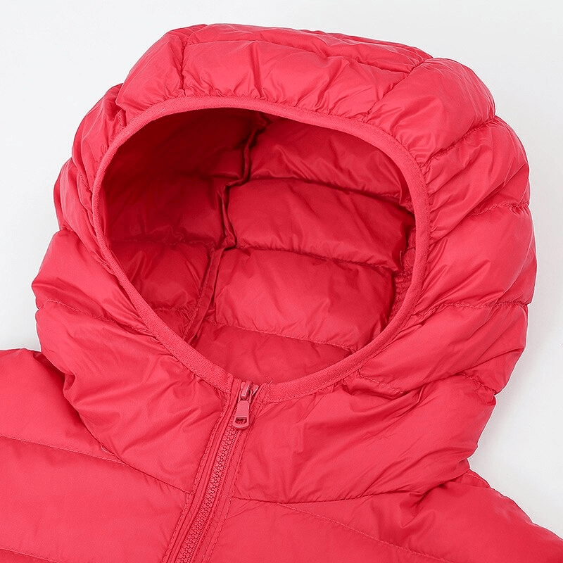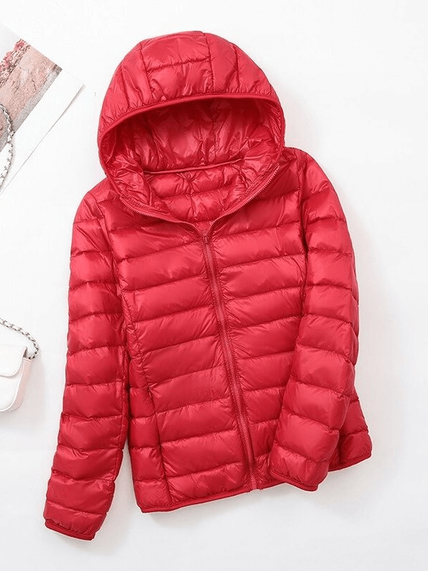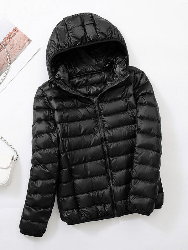 Stay warm and chic in our Women's Lightweight Down Jacket with Hood. This high-performance jacket is crafted with 50% white duck down to ensure you stay comfortably insulated for all occasions. The waterproof, breathable nylon shell is windproof and anti-sweat, offering excellent thermal protection. The hooded design and the zipper closure finish off the classic look.