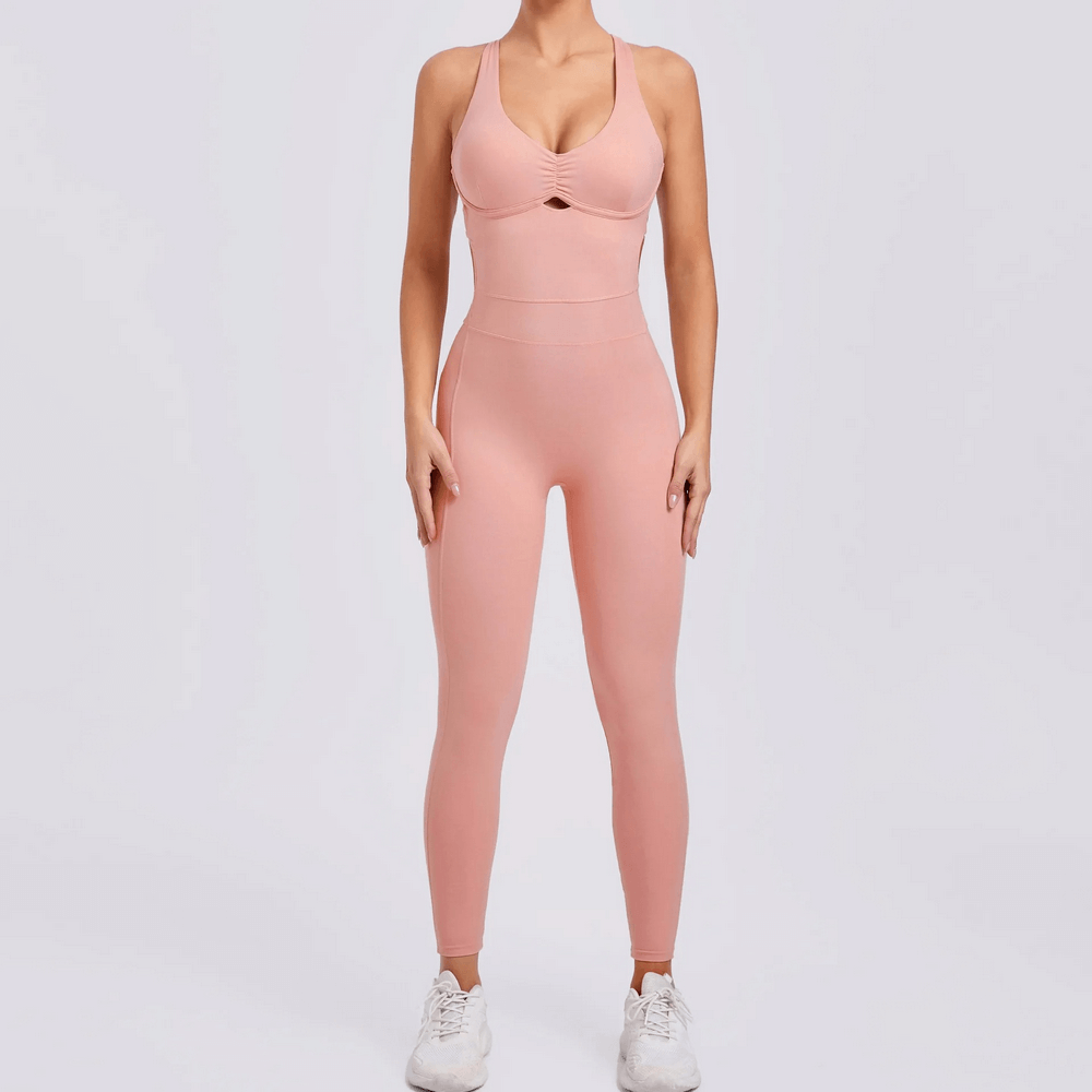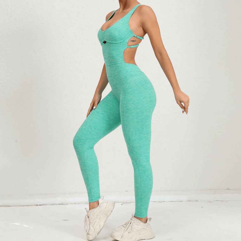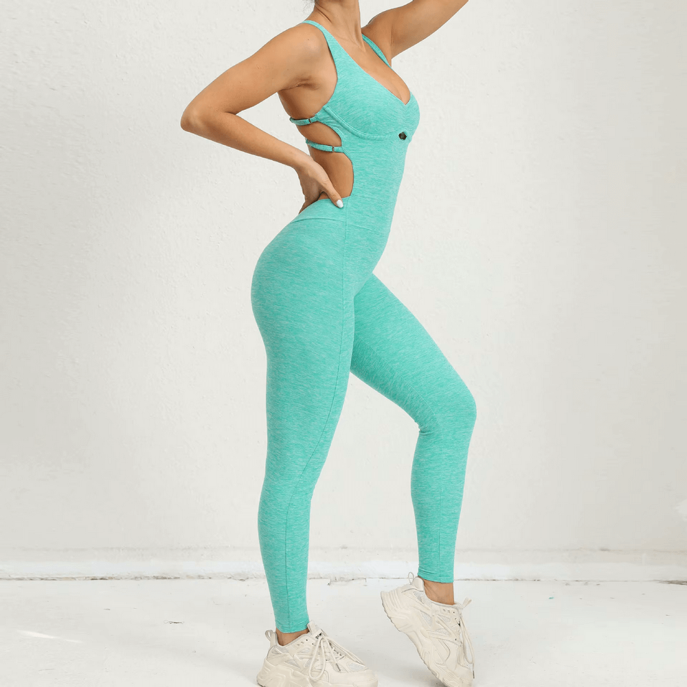 Elevate your activewear with this sleeveless one-piece yoga jumpsuit. Made from a breathable nylon-spandex blend, it offers a compressed fit for enhanced performance. Designed with a stylish hollow-out backless feature, this anti-pilling and quick-dry bodysuit is ideal for running, fitness, cycling, hiking, camping, and dancing. No pockets for a sleek and streamlined look.