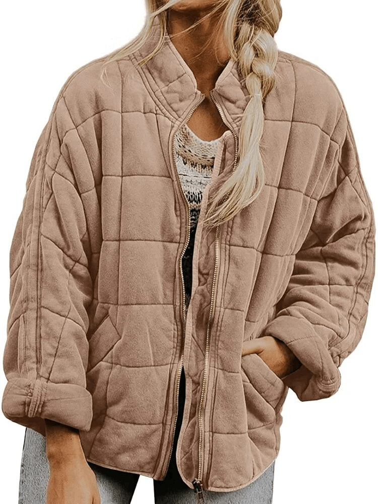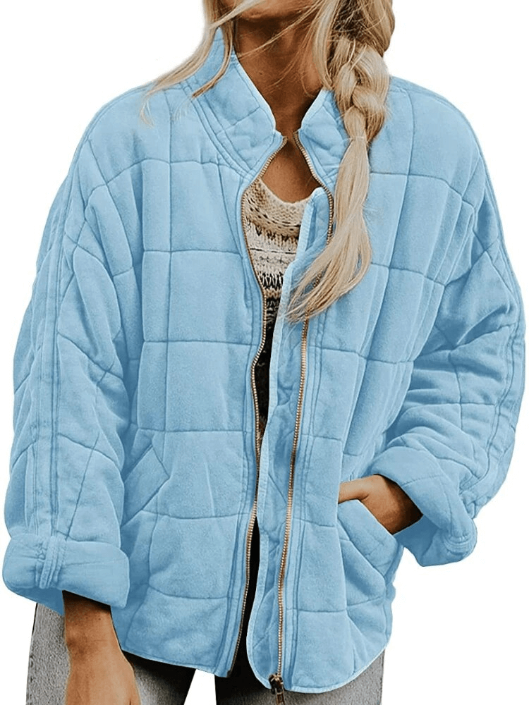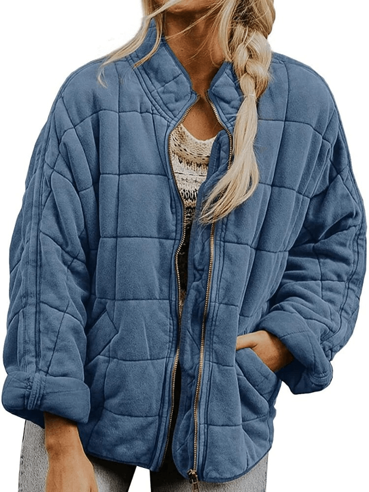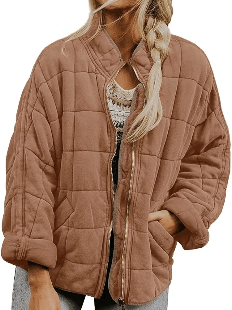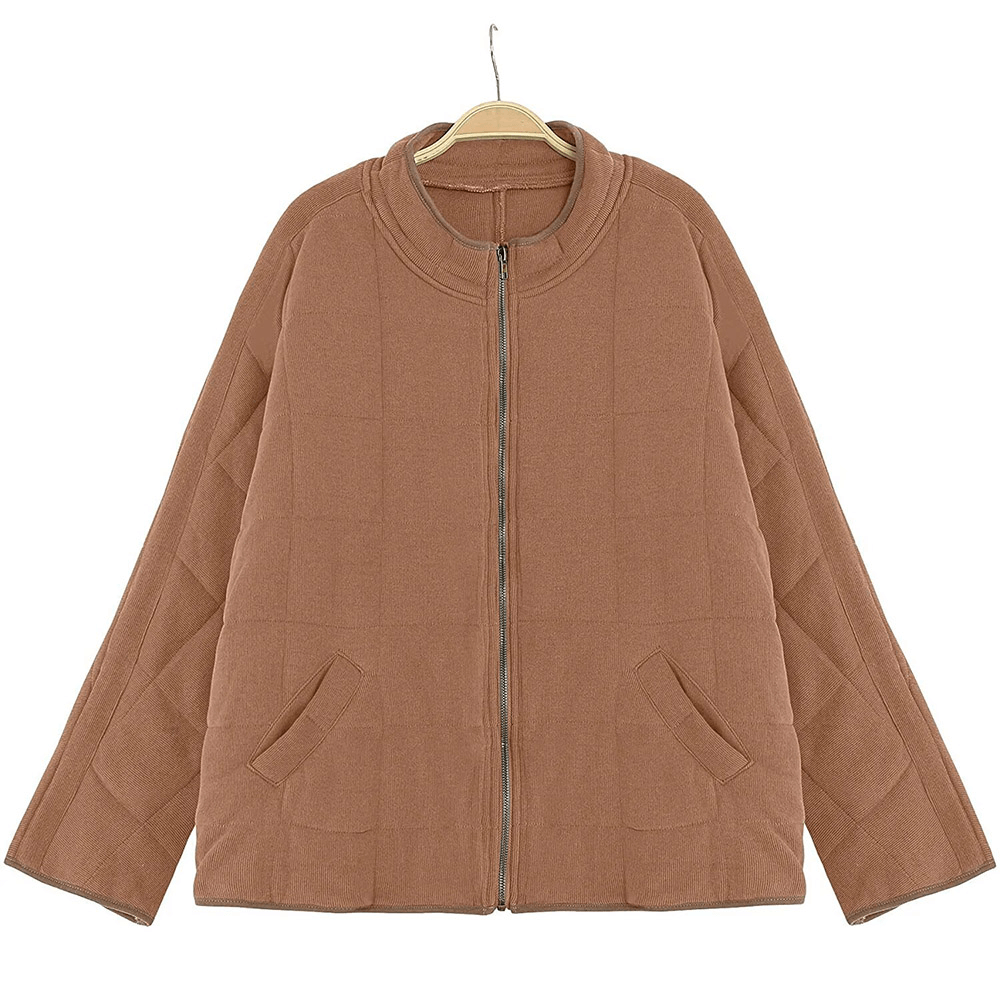 Women's Loose Warm Stand Collar Jacket with Zipper