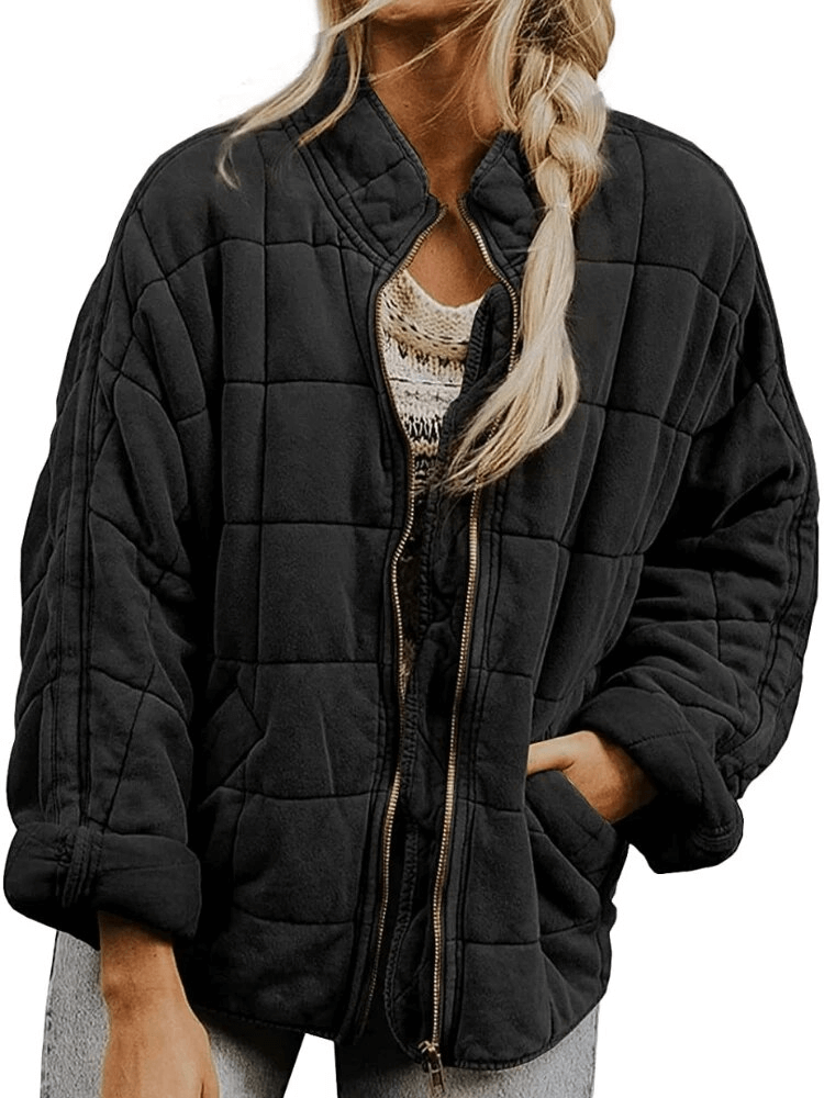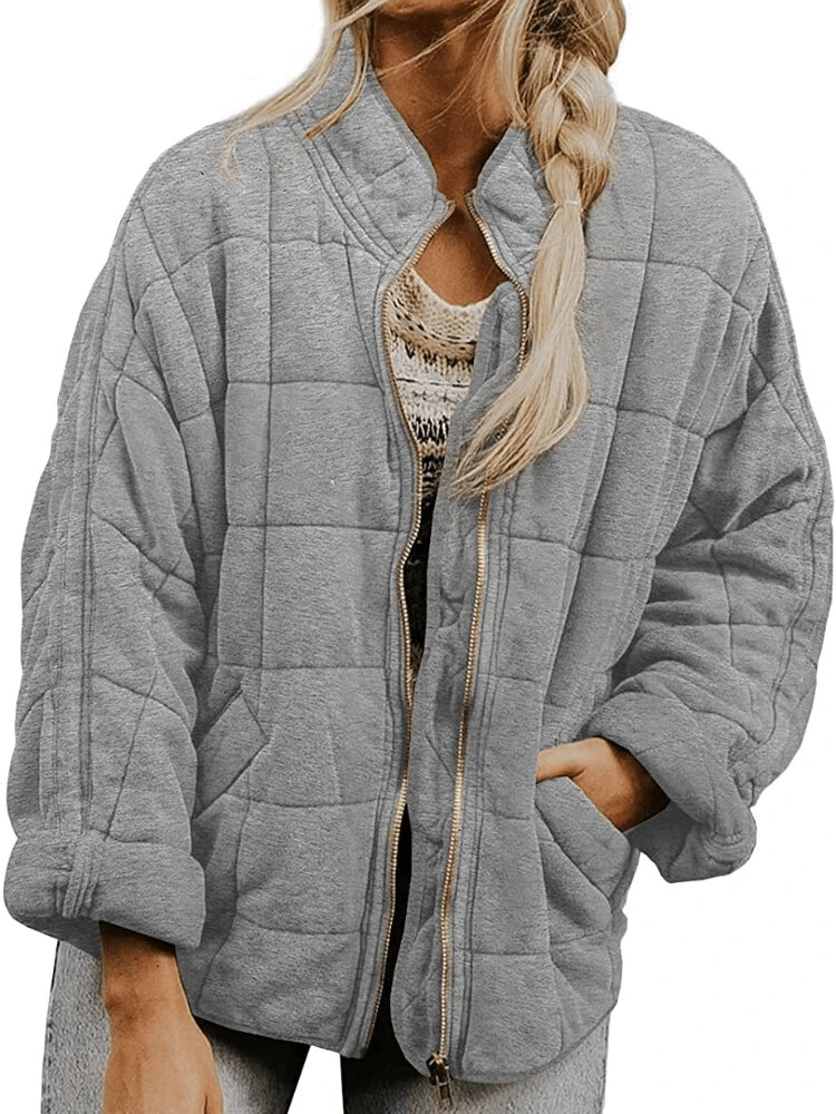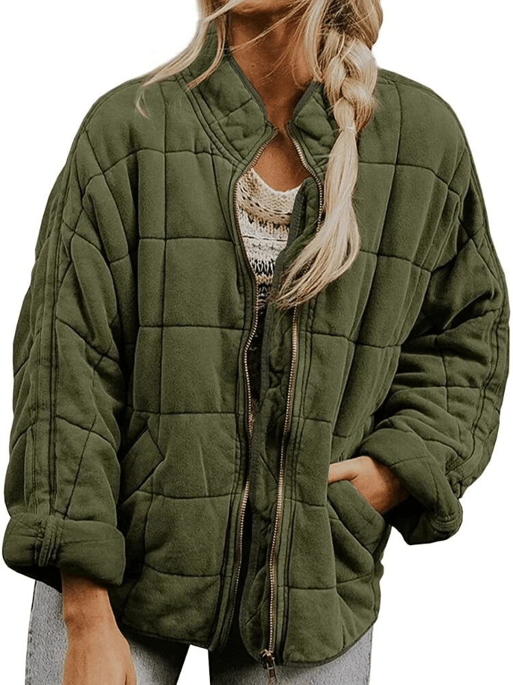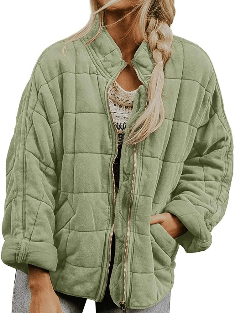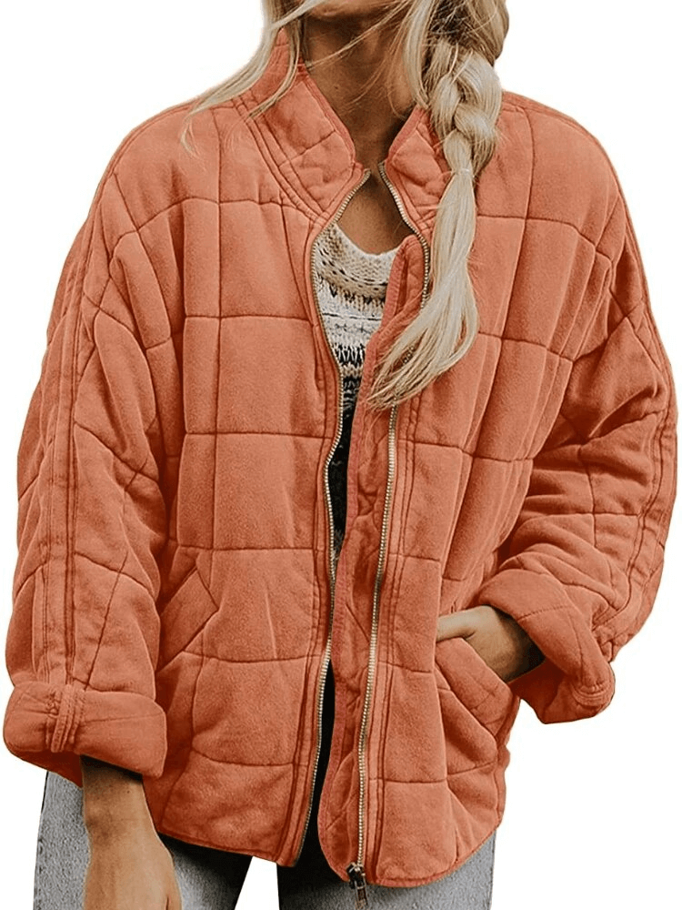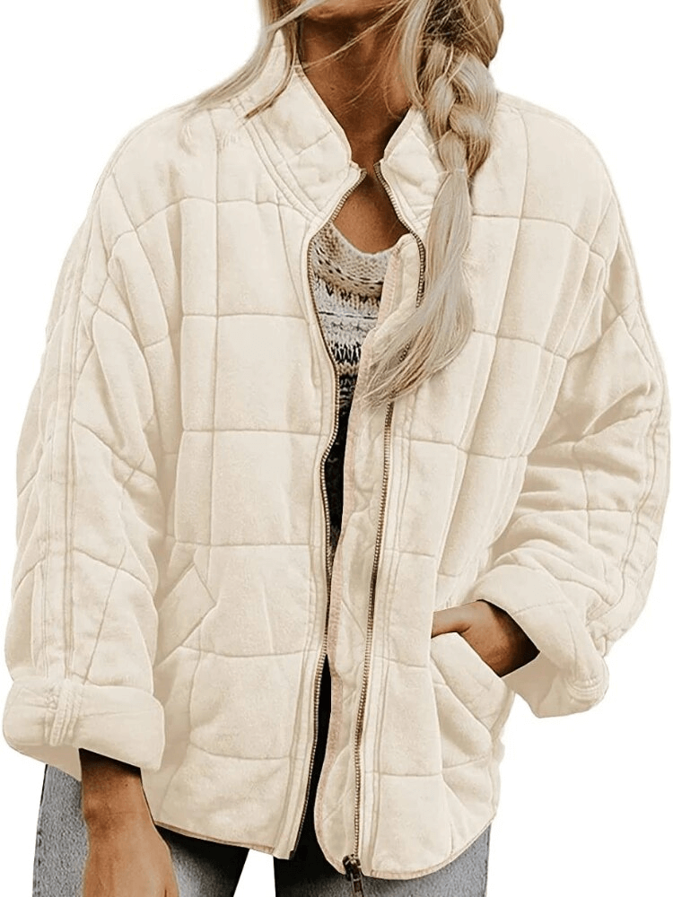 Women's Loose Warm Stand Collar Jacket with Zipper