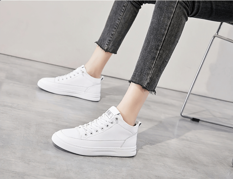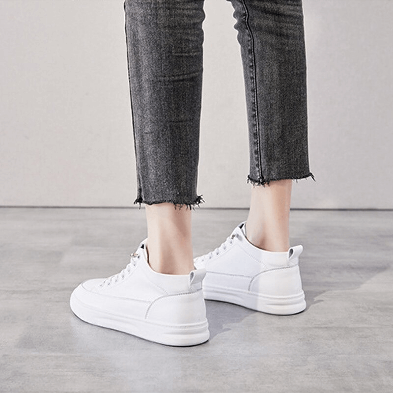 Sports Lace-Up Genuine Leather Vulcanized Shoes for Women