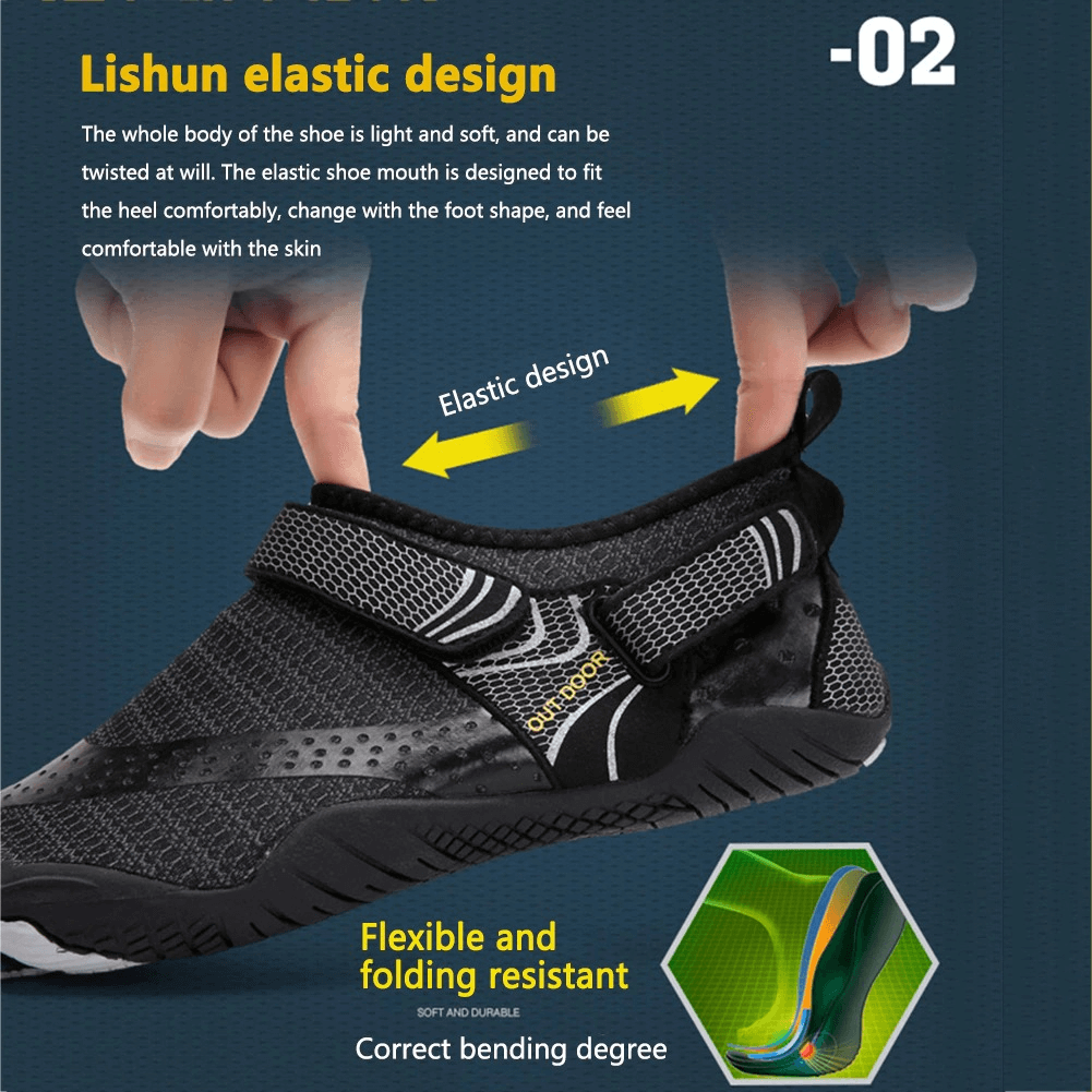 These Unisex Breathable Nonslip Aquatic Sneaker feature a rubber upper and rubber outsole, as well as an elastic upper with an EVA insole. The shoes are designed for comfort and safety during aquatic activities, with a nonslip surface and hook & loop closure. They come in three colors-black, gray, and yellow--making them a great choice for both men and women.