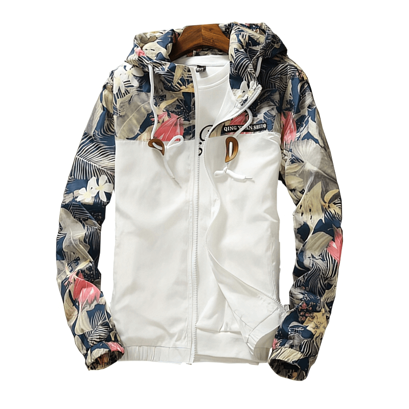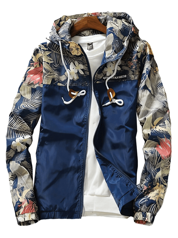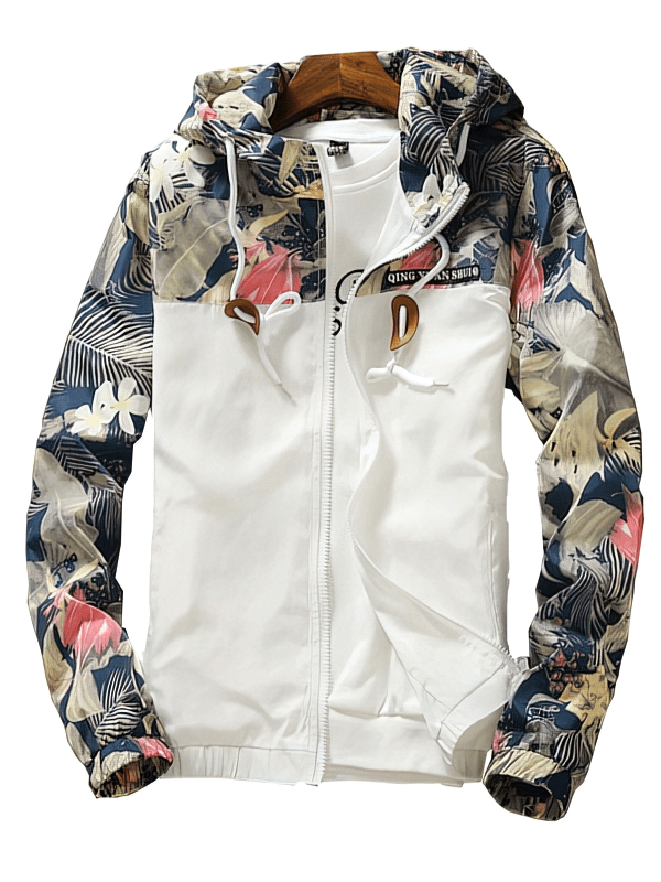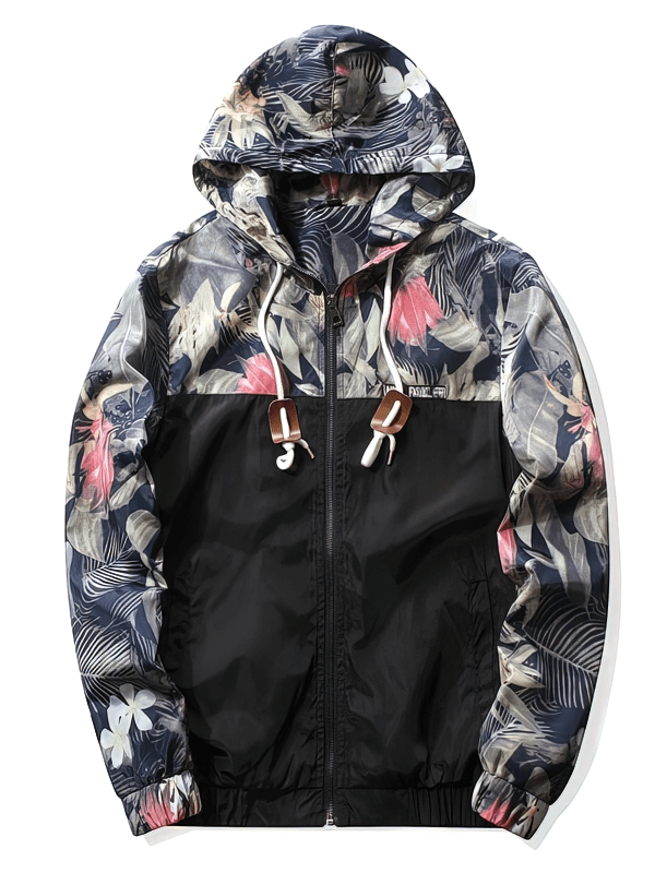 Stylish Windproof Women's Windbreaker with Floral Print with Hood