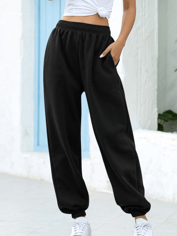 These high-waisted trousers for women feature a solid pattern type, a regular fit, and pockets to provide a practical yet stylish option. Made out of cotton fabric for comfort, these sweatpants feature an elastic waist with slight stretch for the perfect fit and are ankle-length. Flatter any outfit with our high-waisted trousers for women.