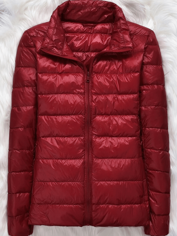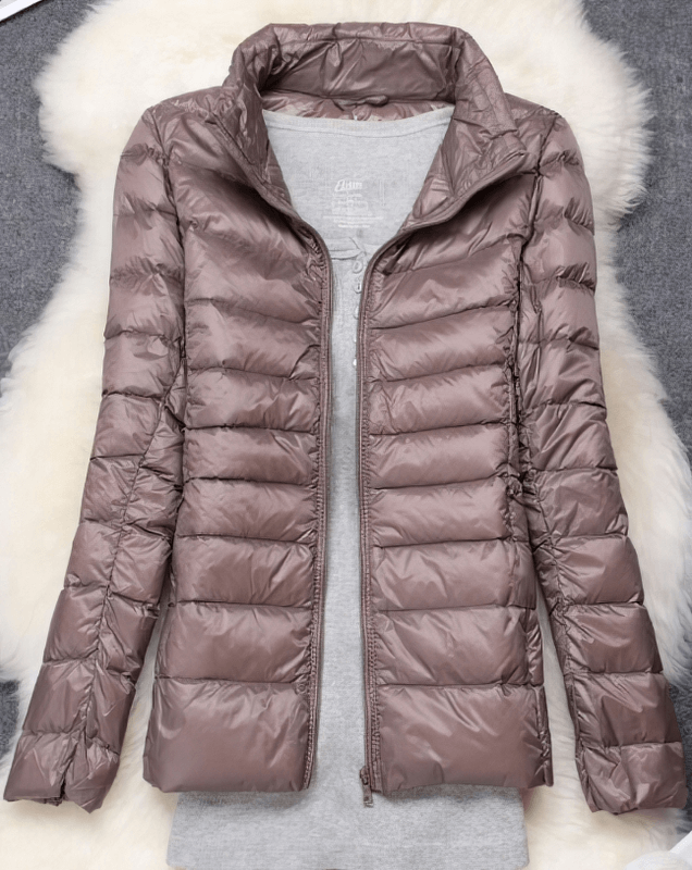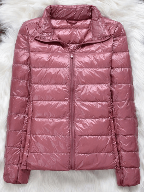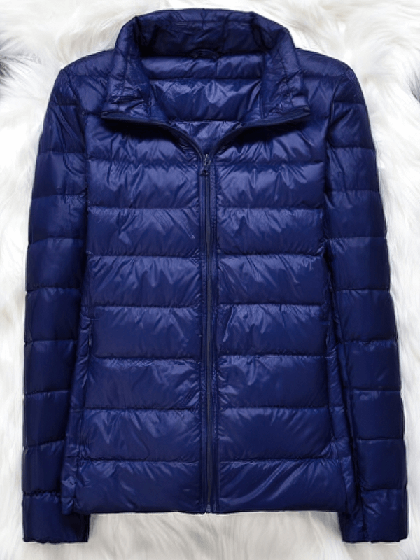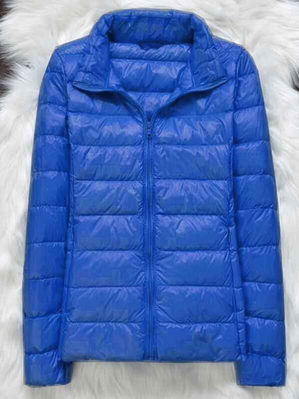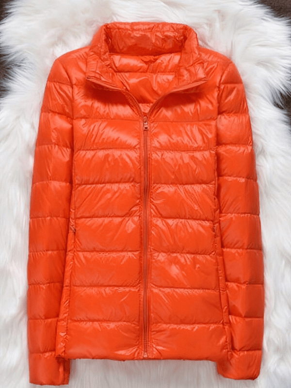 Stay warm and stylish in any season with this Women's Down Jacket Without Hood. Made from cotton and viscose, this casual-style jacket is filled with 90% white duck down for superior insulation. With a full sleeve length, solid pattern, and zipper closure, this jacket also features pockets and zippers for a fashionable touch. Get the perfect balance of comfort and chic style with this women's Down Jacket Without Hood.