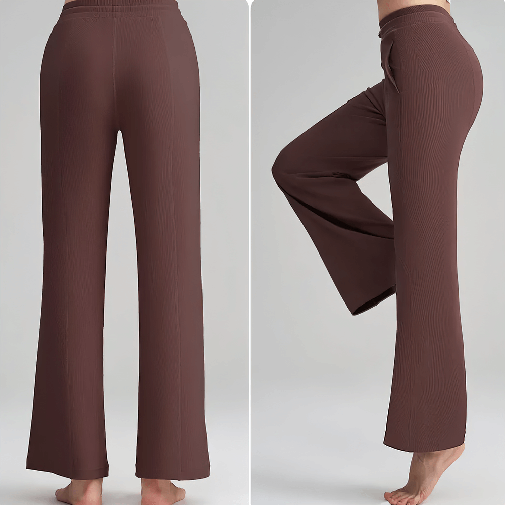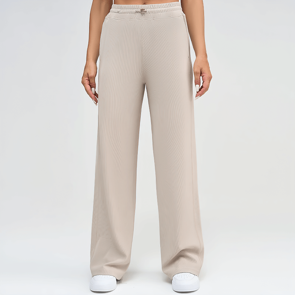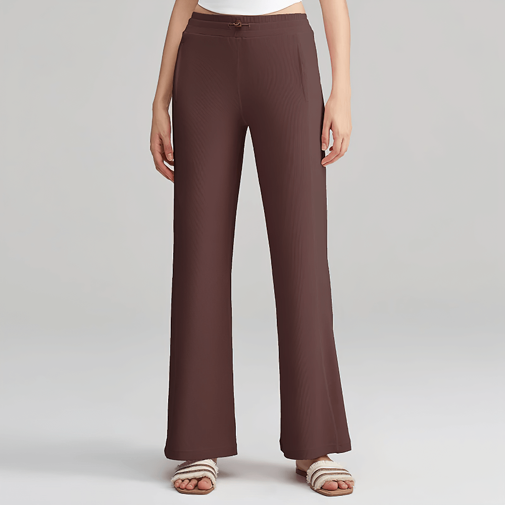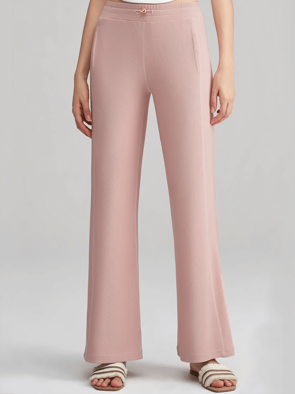 Crafted from breathable, skin-friendly ribbed fabric, these lightweight wide-leg pants are perfect for casual wear or lounging. Featuring a stretchy adjustable waistband and deep side pockets, they provide practicality for everyday activities or travel. The seamless design adds a polished look, while the soft fabric ensures a relaxed fit. Elevate your wardrobe with this versatile essential.