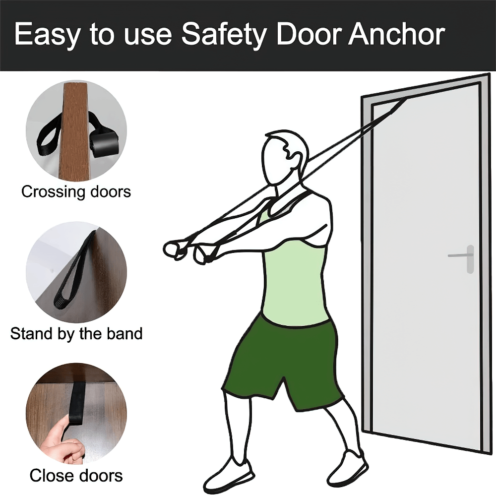 Secure your resistance bands with this durable door anchor strap, ideal for muscle toning, strength training, and rehabilitation exercises. Compatible with most resistance tubes and bands, this fitness accessory turns any doorway into a personal gym. The foam stopper ensures stability while protecting your door during intense workouts.
