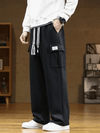 Stay stylish with these men's sports pants. Featuring several pockets, a midrise waist, loose fit, and full length, they are made of durable polyester and cotton. The drawstring closure ensures a comfortable and secure fit.